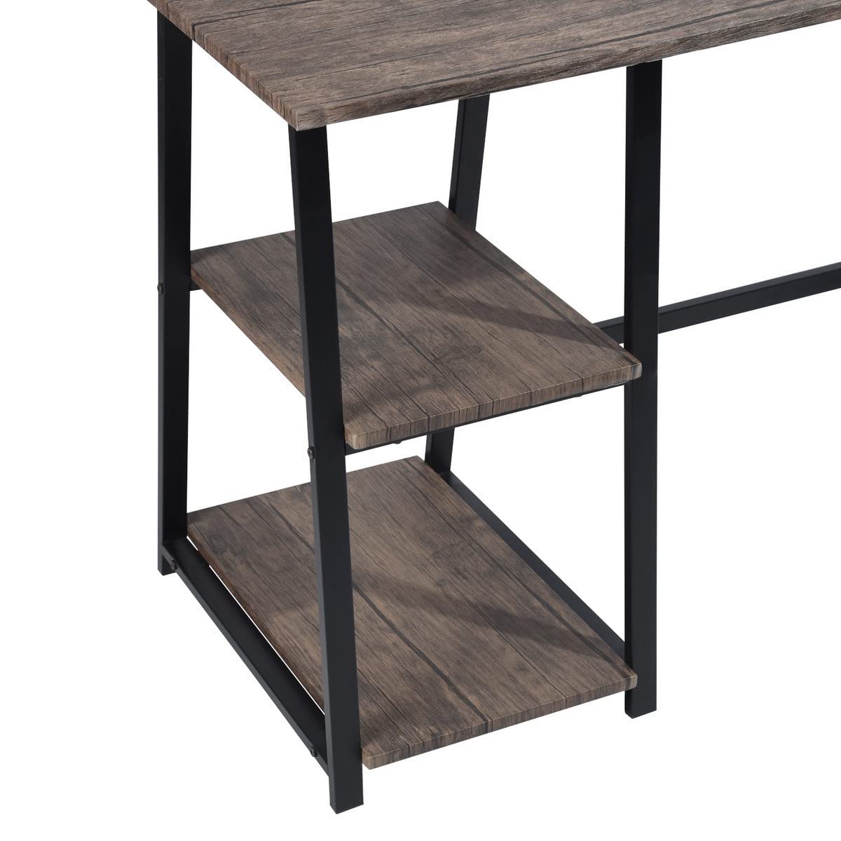 HomeRoots MDF+Metal Tube Modern Geo Oak Home Office Table with Storage Shelves