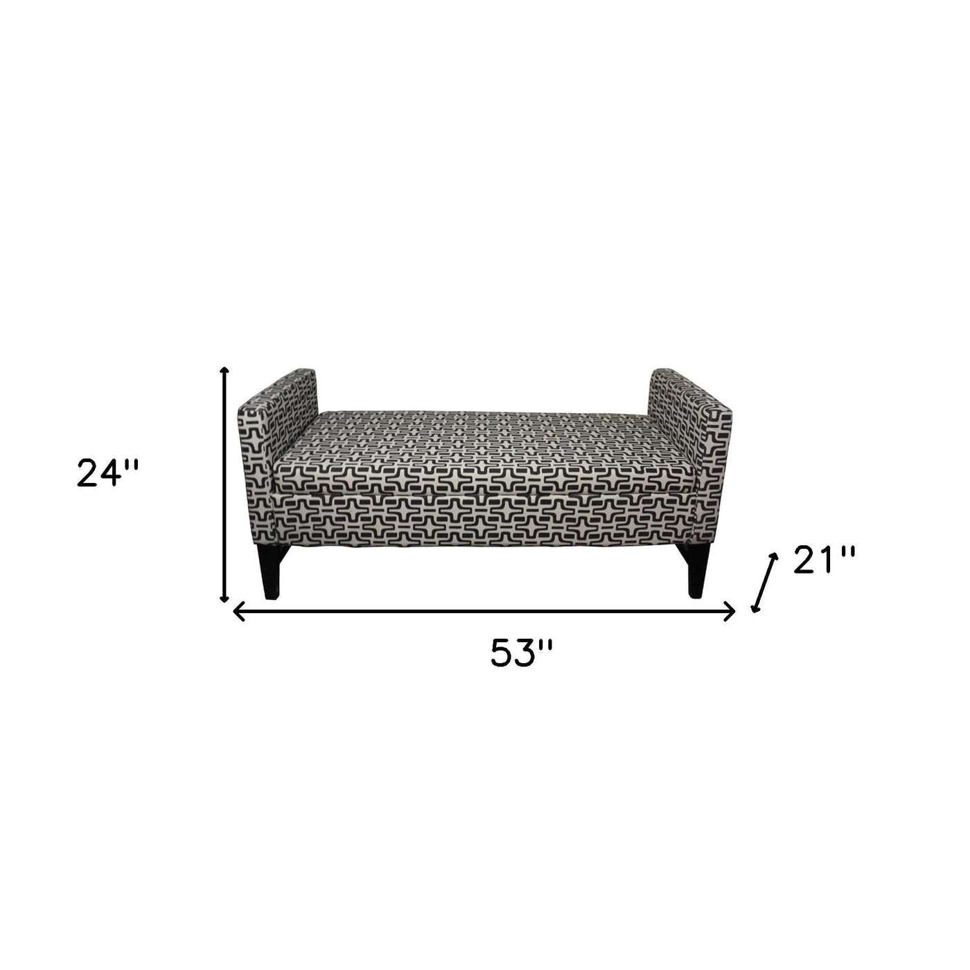 Add a stylish finishing touch to your home with the modern dark brown and white retro star print storage bench. A classic multifunctional piece, this bench can be an additional seating option and a practical storage option for your living room, office or home office. It features hidden storage space with a convenient pull-up mechanism, plush foam padding for maximum comfort, and is masterfully upholstered in a beautiful printed fabric. The dark wenge black tapered wood legs add an elegant touch, making this bench a stylish and practical way to add seating and organization to your space. 24'H x 53'W x 21'D