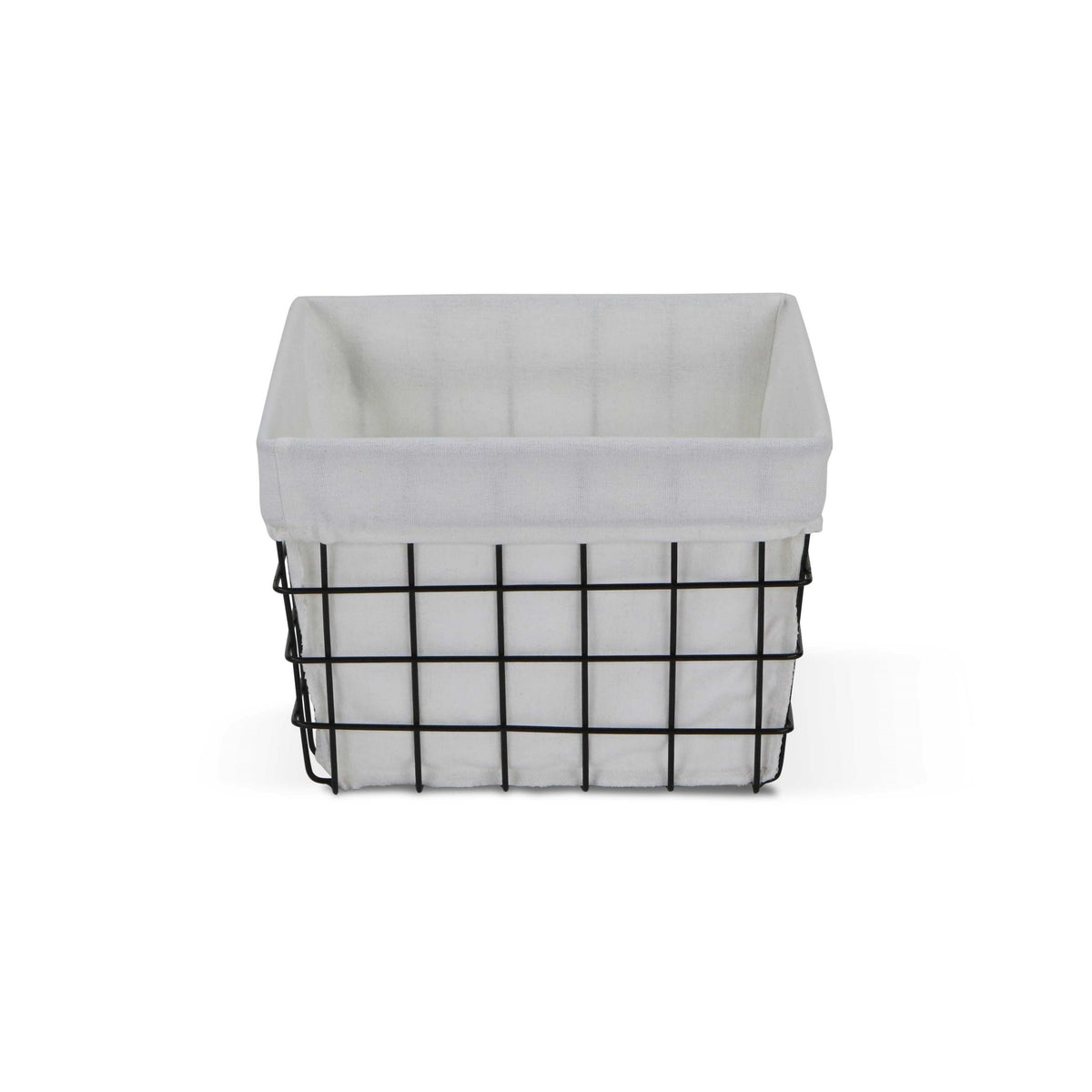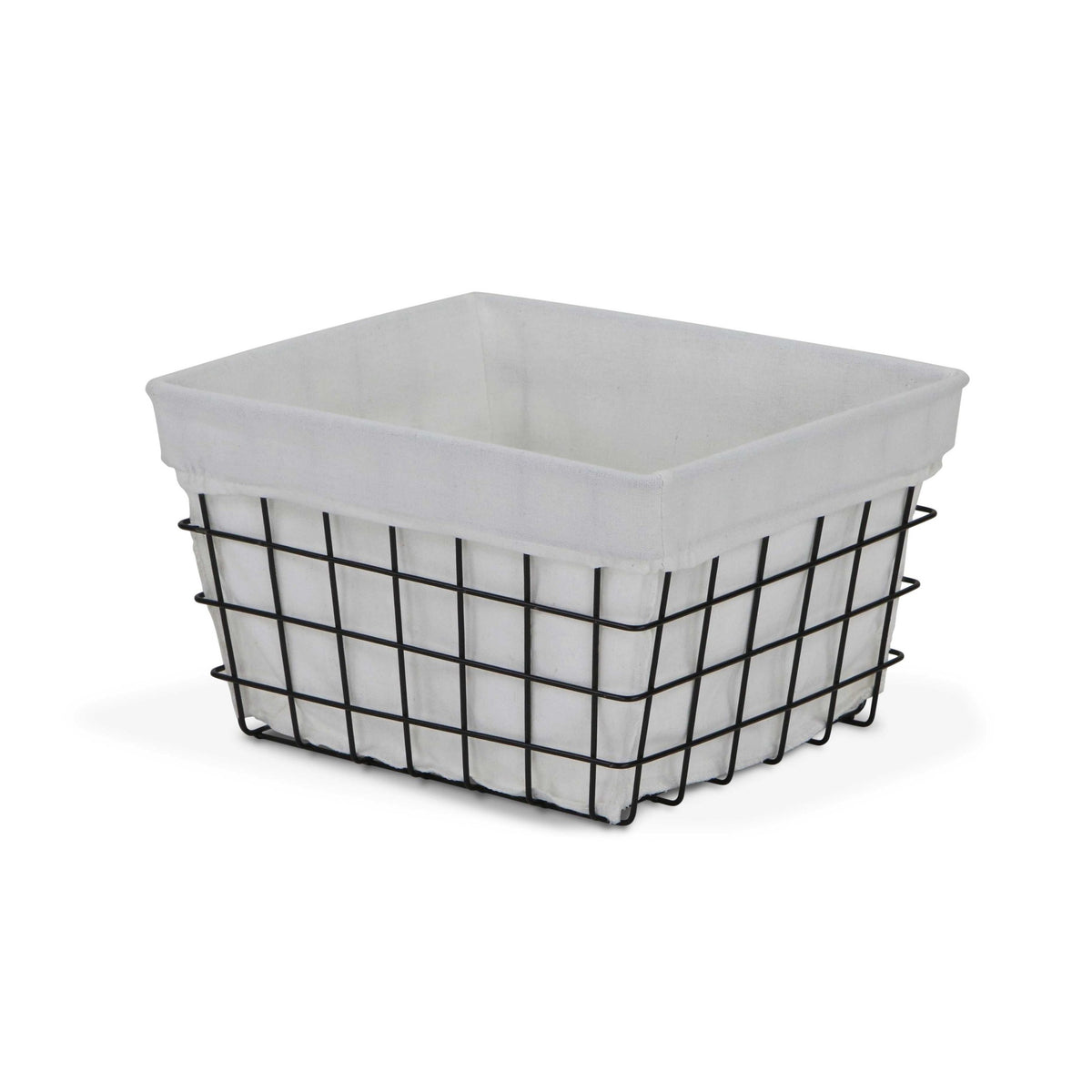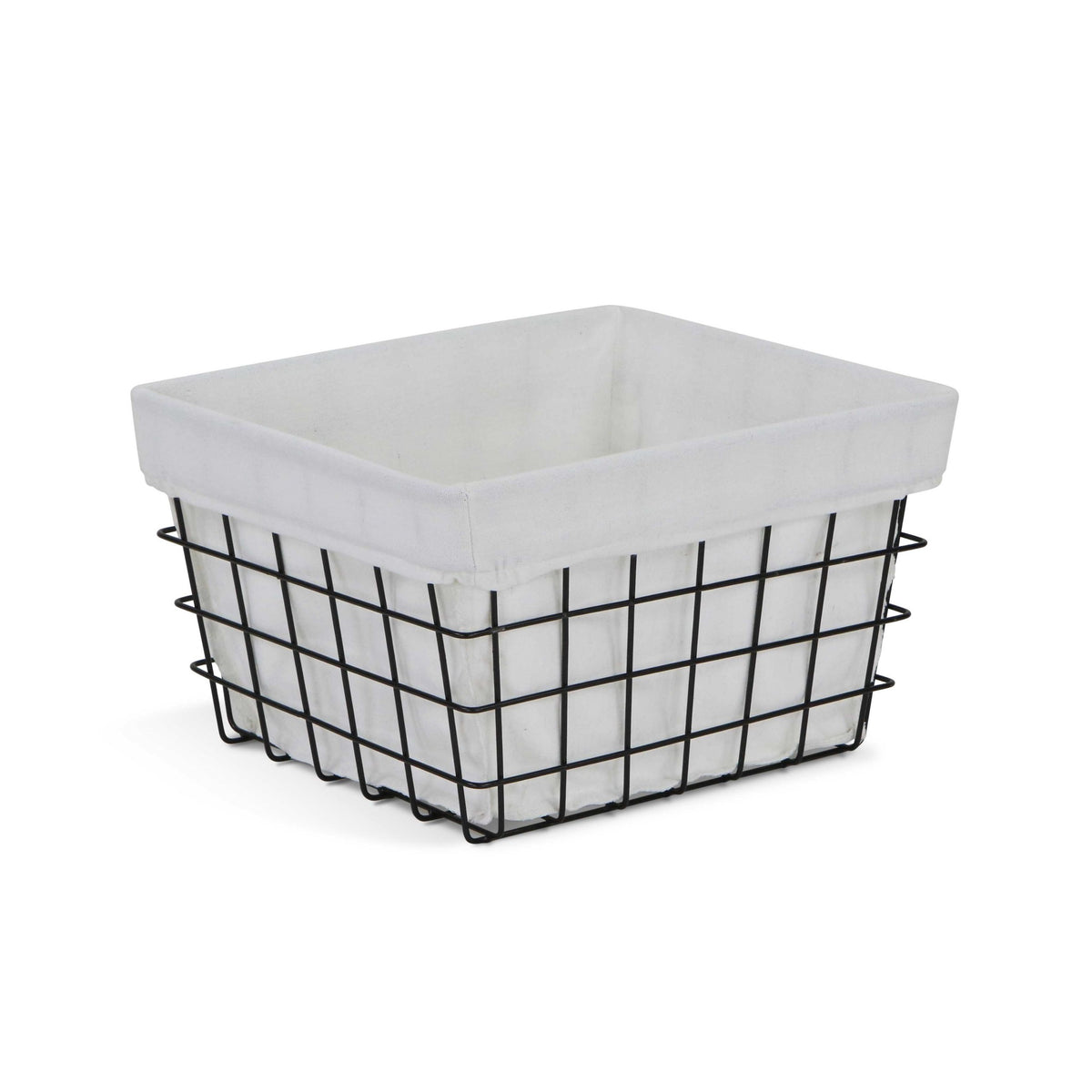 Enrapture the gaze of your friends and guests with a piece that will revamp your home with stylish appeal with this delightful wire storage. Its a splendid piece, with a contemporary style that will be a notable adornment for your space and a vibrant color that will remove lifelessness from your rooms. This wire basket is a high quality piece, expertly made of high grade materials. Features. An entirely handmade and hand crafted design. Each piece includes a fabric lining and side metal handles. Fully assembled and ready for use, simply unbox and display. This piece is made from a complementary blend of linen and metal materialsSpecifications. Color White. Material Metal. Shape Rectangular. Height 7.7 in.. Width 12.7 in.. Depth 10.5 in.. Weight 2 lbs
