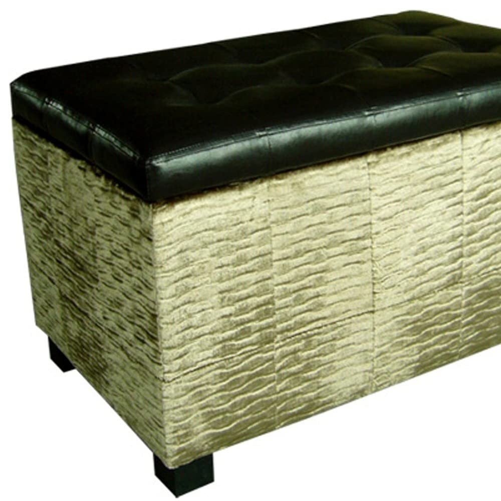 HomeRoots Wood/Microfiber Wavy Beige Velvet and Black Faux Leather Storage Bench