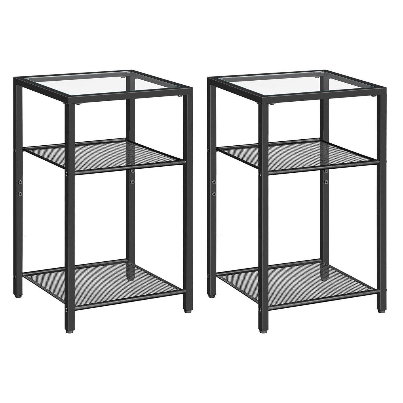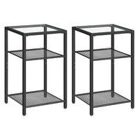 Hoobro Side Tables Set Of 2, 3-Tier Slim Nightstands With Storage Shelves, Modern End Tables, Tempered Glass Bedside Tables, For Living Room, Bedroom, Black Bk77Bzp201