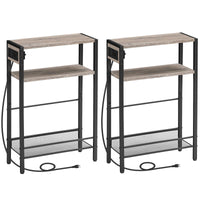 Hoobro Small Narrow Side Table With Charging Station Set Of 2, Skinny End Table For Small Spaces, Slim Nightstand With Usb Ports Outlet, Sofa Beside Table With Storage Shelf Bg102Ubzp201