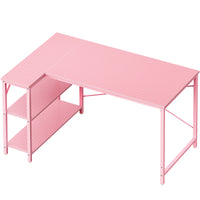Huuger L Shaped Desk, 47 Inches Computer Desk With Reversible Storage Shelves, Gaming Desk, Corner Desk Home Office Desks, Writing Desk Study Desk With Metal Frame, Pink