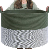 Extra Large Cotton Rope Basket - Material: Soft & Durable Cotton - Color: Green - Size: 21.7 X 13.8 Inches Different Ways To Display Small Gift Baskets. - Storage Room. Great For Storing A Variety Of Large, Space-Consuming And Infrequently Used Items. - Playroom. Soft Material, Perfect For Storing Toys Such As Barbies, Learning Toys, Sorting Toys. Note: - Packing: The Basket Ships Folded, You Can Iron It Or Stuff It With Blankets For Several Days To Reshape It. - Cleaning: Easy To Clean By Machine Washing. - Storing: You Can Fold The Cloth Storage Bin When It'S Not In Use, Which Doesn'T Take Up Your Space.