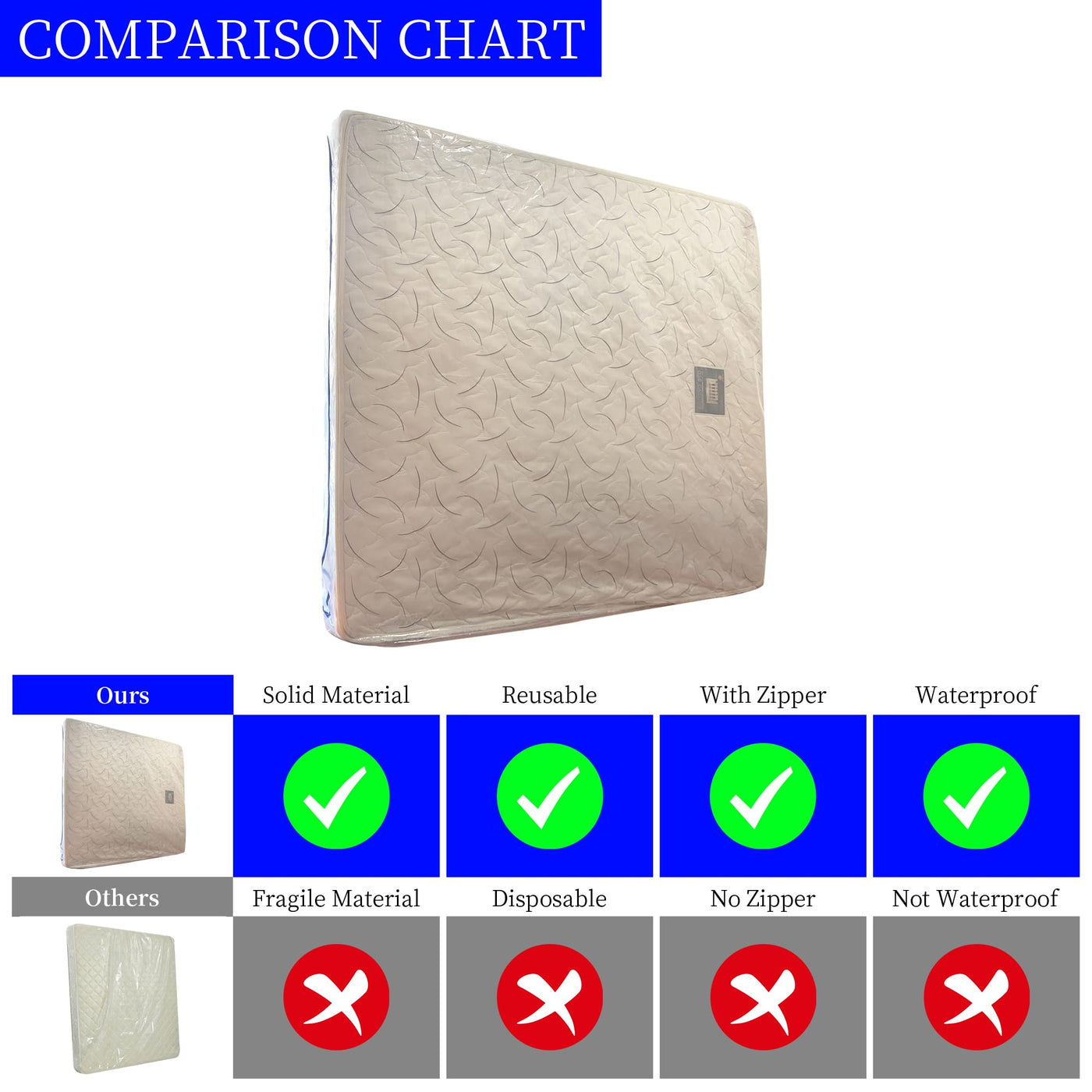 Material Juneshe Mattress Storage Bag Is Made Of 3 Mil Thick New, Clear Polyethylene. It'S Heavy Duty Enough To Keep Your Expensive Mattress Safe While Moving And Storage. With Wide Zipper Closure On The End, It'S Very Easy And Time-Saving To Seal. Size 4 Sizes Are Available Fit For Different Mattress. 77X41X14 Inches For Twin Mattress 77X56X14 Inches For Full Mattress 82X62X14 Inches For Queen Mattress 82X78X14 Inches For King Mattress Be Sure To Measure The Size Of Mattress In Order To Have The Right Bag. Features 3 Mil Thick New Pe Film Waterproof And Stain Resistant Durable And Economic Option No Vent Holes Reusable