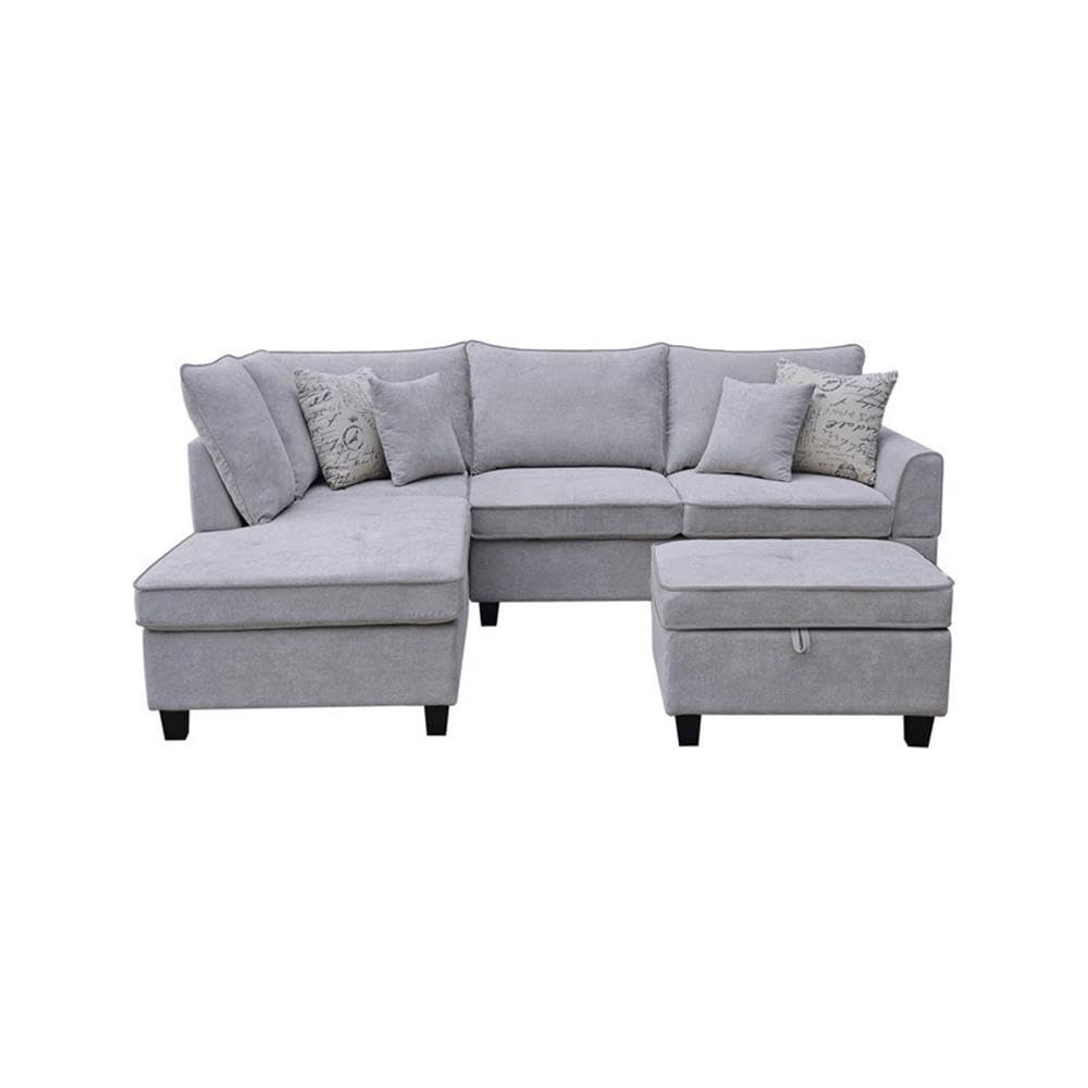 Lilola Home Harmony 99.5' W Light Gray Fabric Sectional Sofa with Left-Facing Chaise and Storage Ottoman