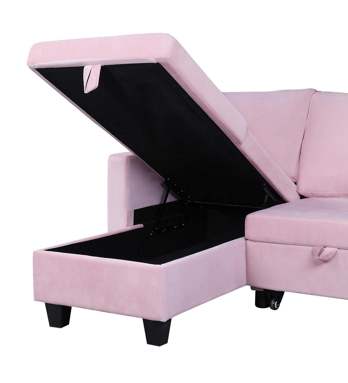 Lilola Home Nova 82.5' W Pink Velvet Reversible Sleeper Sectional Sofa with Storage Chaise
