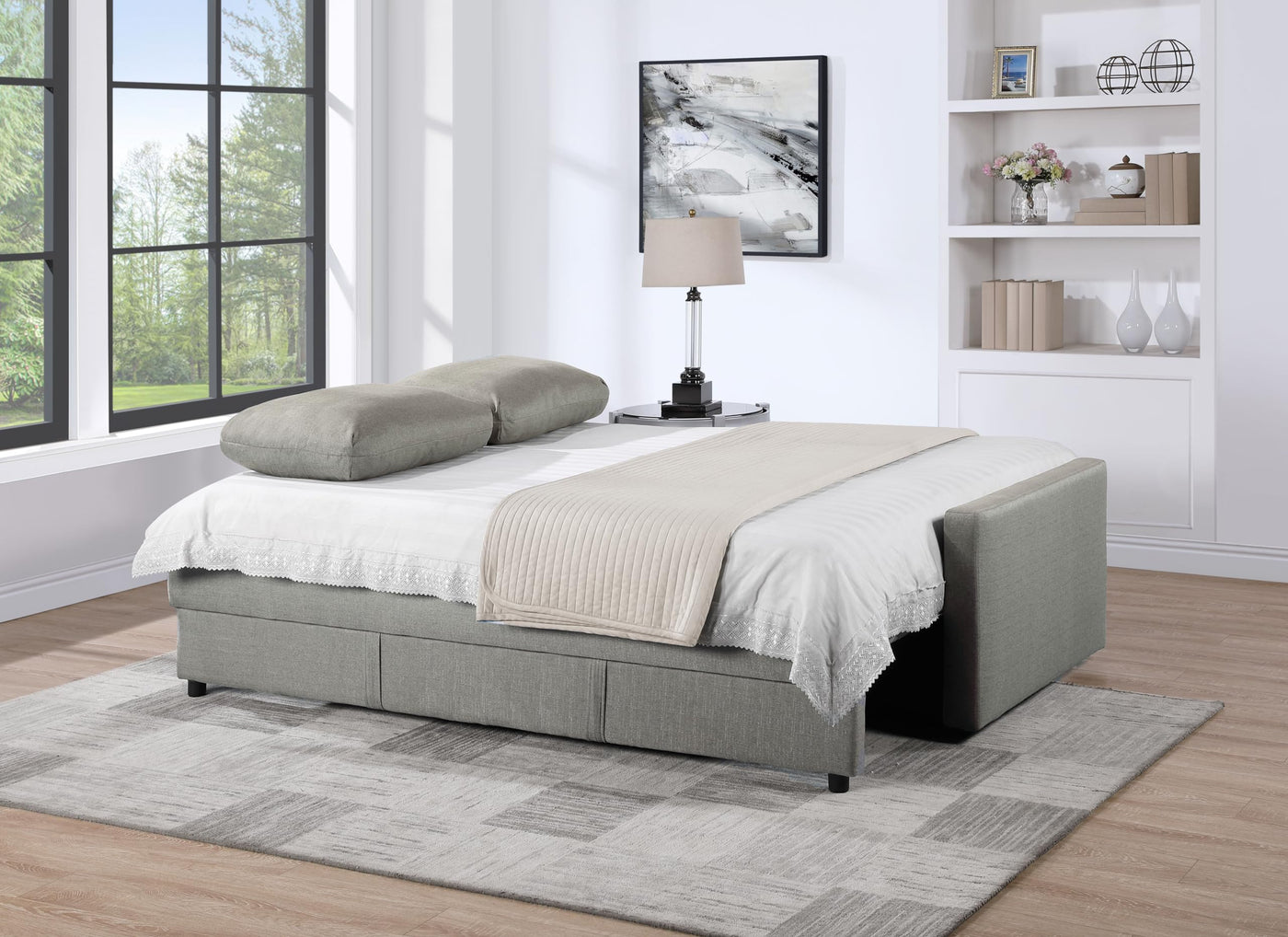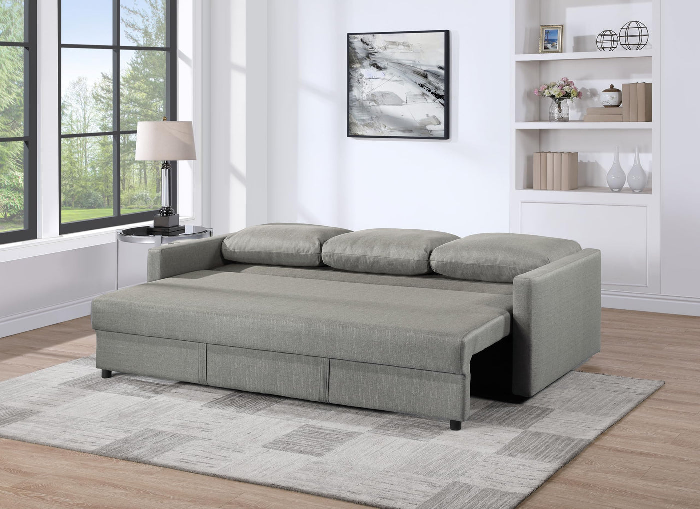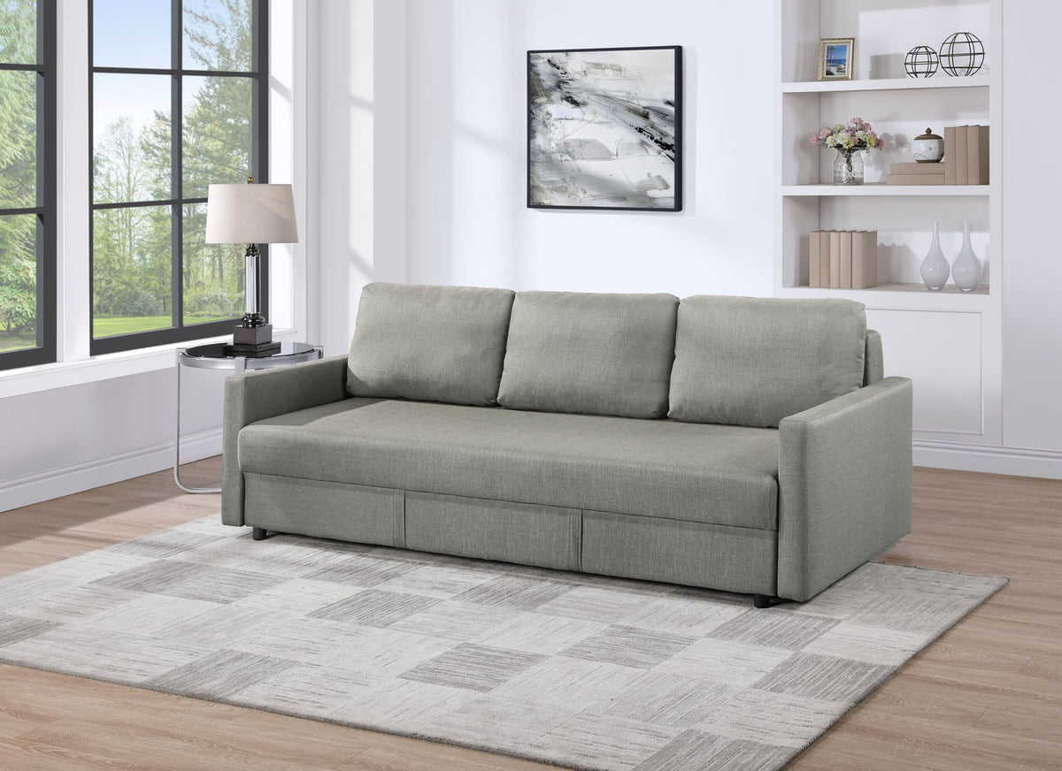 Lilola Home Odette 88.5' W Gray Linen Convertible Sleeper Sofa with Storage