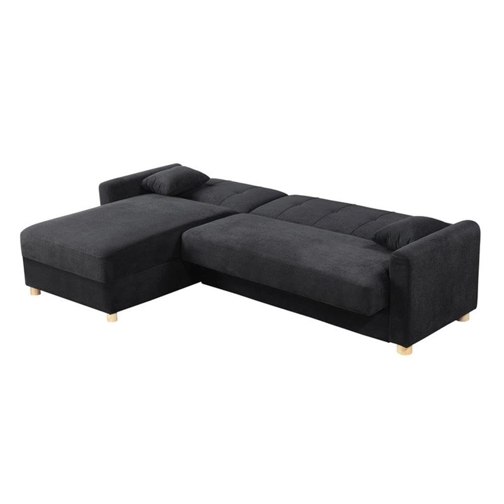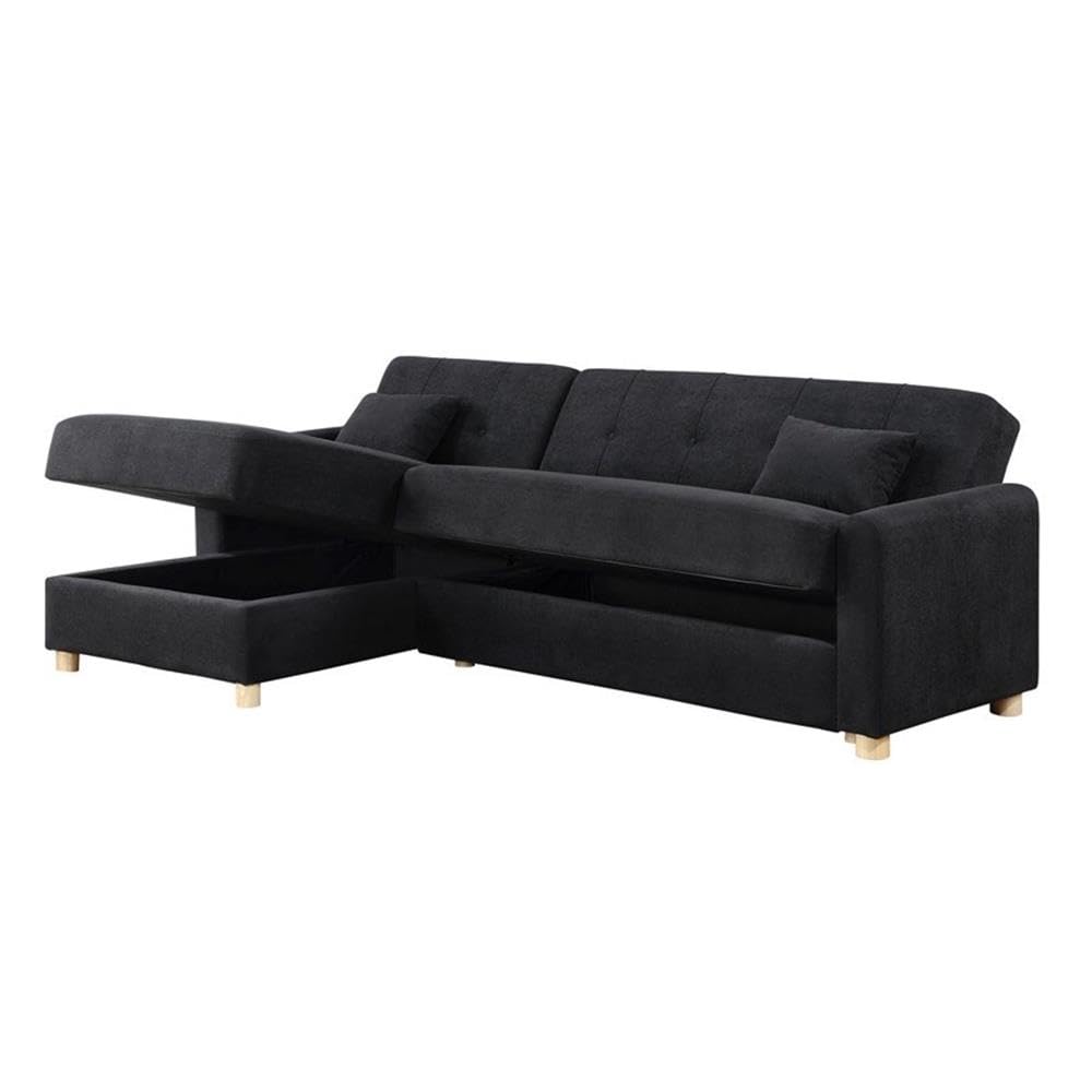 Lilola Home Thomas 99.5' W Black Fabric Convertible Sleeper Sectional Sofa with Reversible Chaise and Storage