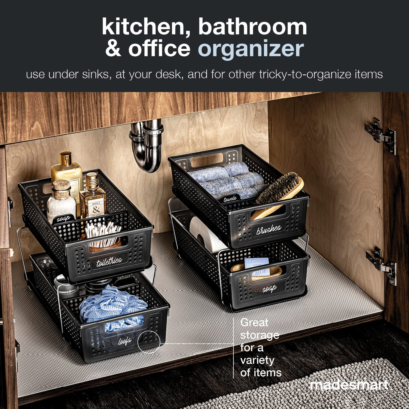 Maximize The Space In Your Home Or Office With The Madesmart 2-Tier Organizer. Simple And Convenient, This Multipurpose Organizer Offers A Practical Storage Solution To Use In Kitchen Cabinets Or Pantries, Under Bathroom Sinks, On Desks, Or Other Areas To Keep Your Home Or Office Space Clean And Organized. It'S Designed With Two Removable Storage Baskets That Provide Easy Access To Your Essentials, And Both Baskets Have Two Adjustable Dividers To Help You Further Separate Your Items For Easy Custom Organization. Declutter Your Bathroom With Under-Sink Organization For Your Soaps, Makeup, Brushes, And Other Bath Products, Or Tidy Up The Tricky-To-Organize Items In Your Bedroom Like Electronics, Toys, Crafts, Medicine, And Beyond. It Can Also Be Used As A Desk Organizer For Various Office Supplies To Utilize Otherwise Unused Vertical Space Or Anywhere In The Kitchen To Store Your Cleaners, Spices, Snacks, And Much More. Durable And Efficient, This Storage Organizer Is Made With High-Quality Bpa-Free Plastic For Years Of Quality Use And Is Optimized For Quick And Easy Assembly, And It Features Convenient Space For Dry-Erase Labeling On The Baskets And Dividers.