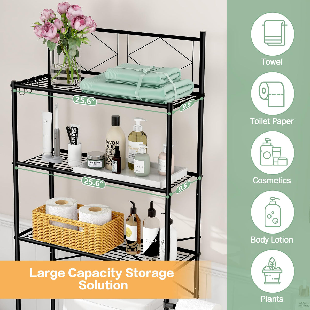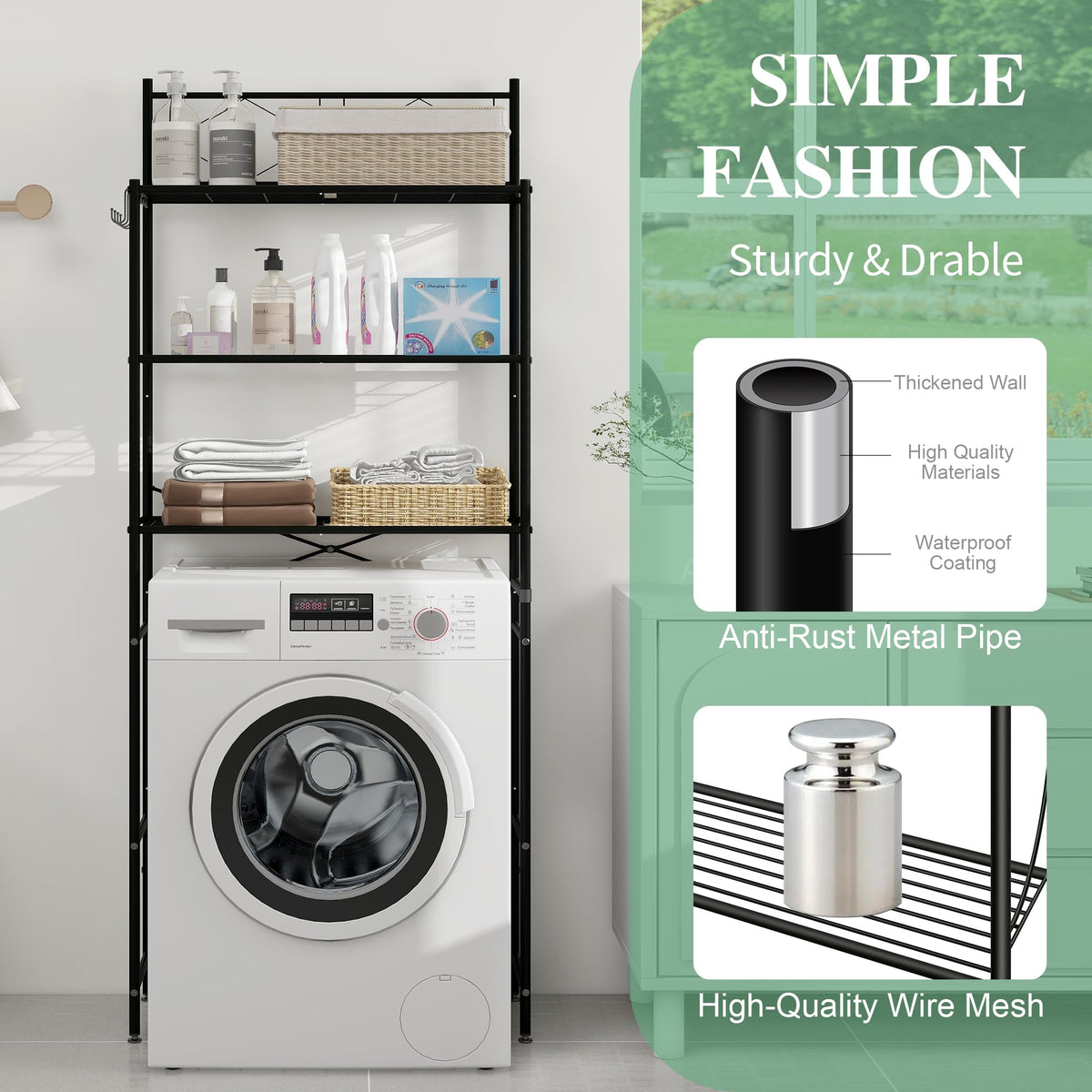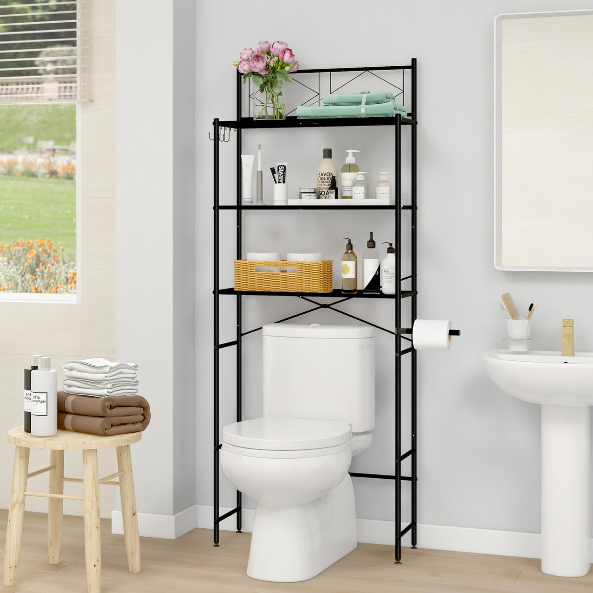 Mallboo Over The Toilet Storage Rack,Metal 3-Tier Over Toilet Organizer Shelf,Freestanding Above Toilet Shelf For Bathroom, Laundry(Black)