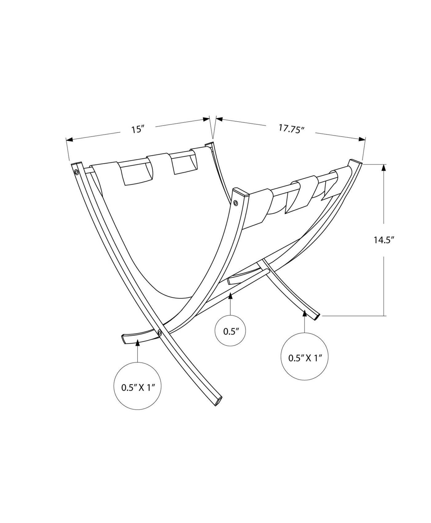 Monarch Specialties 2036, Organizer, Holder, Standing, Storage, Bathroom, Office, Bedroom, Pu, White, Contemporary Magazine Rack Leather-Look Chrome Metal, 15' L x 17.75' W x 14.5' H