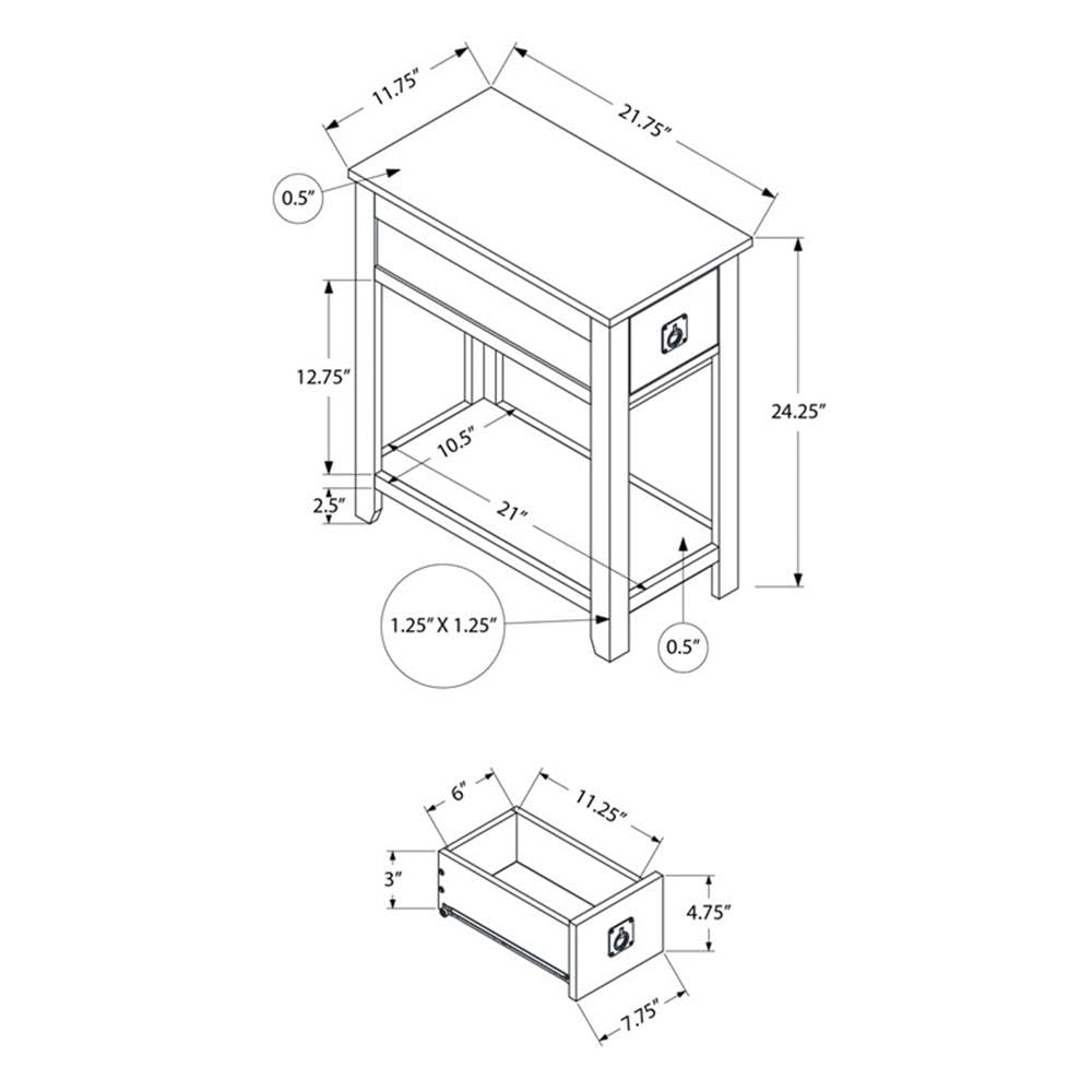 Monarch Specialties 3953, End, Side, Bedroom, Narrow, Storage Drawer, Veneer Accent table, Nightstand, 11.75' L x 21.75' W x 24.25' H, Espresso