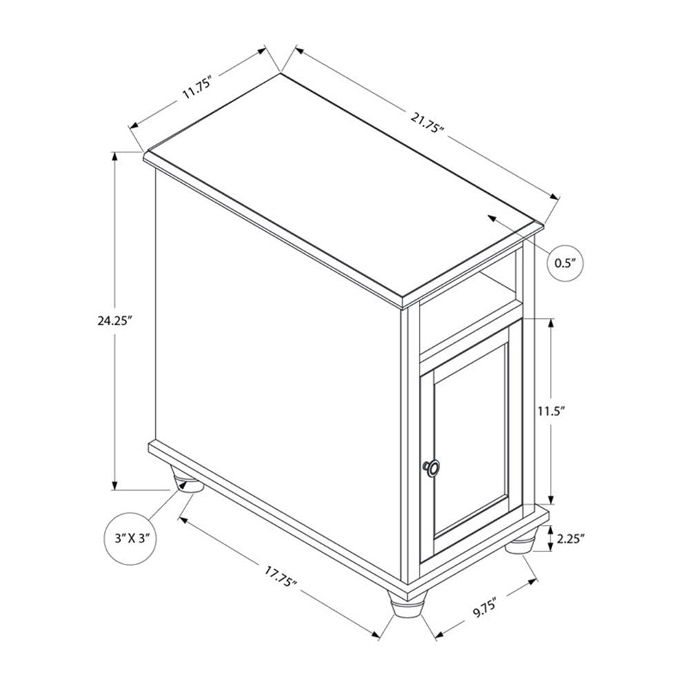 Monarch Specialties 3965 Accent, End, Side Table, Bedroom, Nightstand, Storage Table-24 H/Antique White/Espresso Veneer, 11.75' L x 21.75' W x 24.25' H