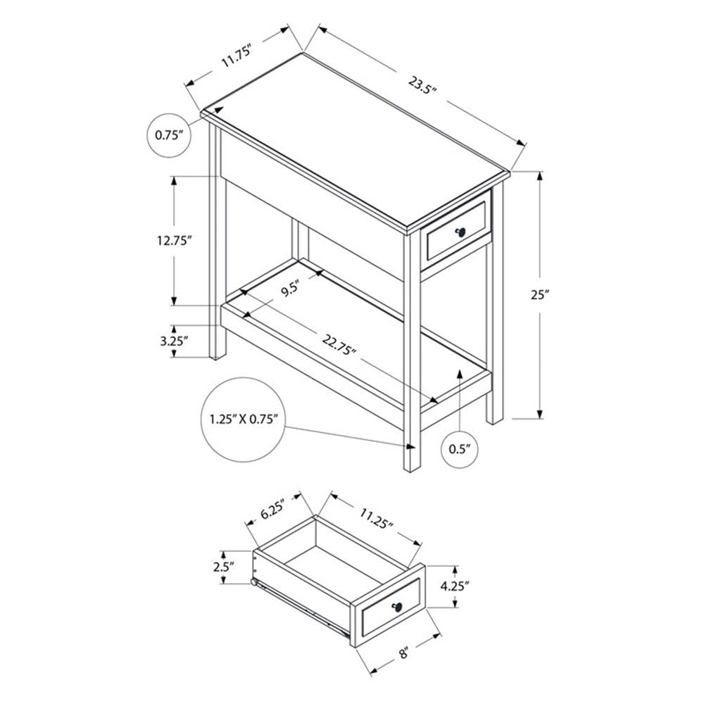 Monarch Specialties 3990 Accent, 2 Tier, End, Side Table, Narrow, Nightstand, Storage Drawer Table-25 H/Dark Walnut Veneer, 11.75' L x 23.5' W x 25' H