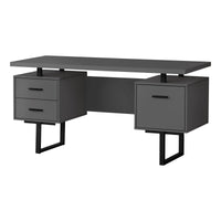 Monarch Specialties 7630 Computer Desk, Home Office, Laptop, Left, Right Set-up, Storage Drawers, Work, Metal, Laminate, Contemporary Desk-60 L Modern Grey Black, 60' L x 23.75' W x 30.25' H