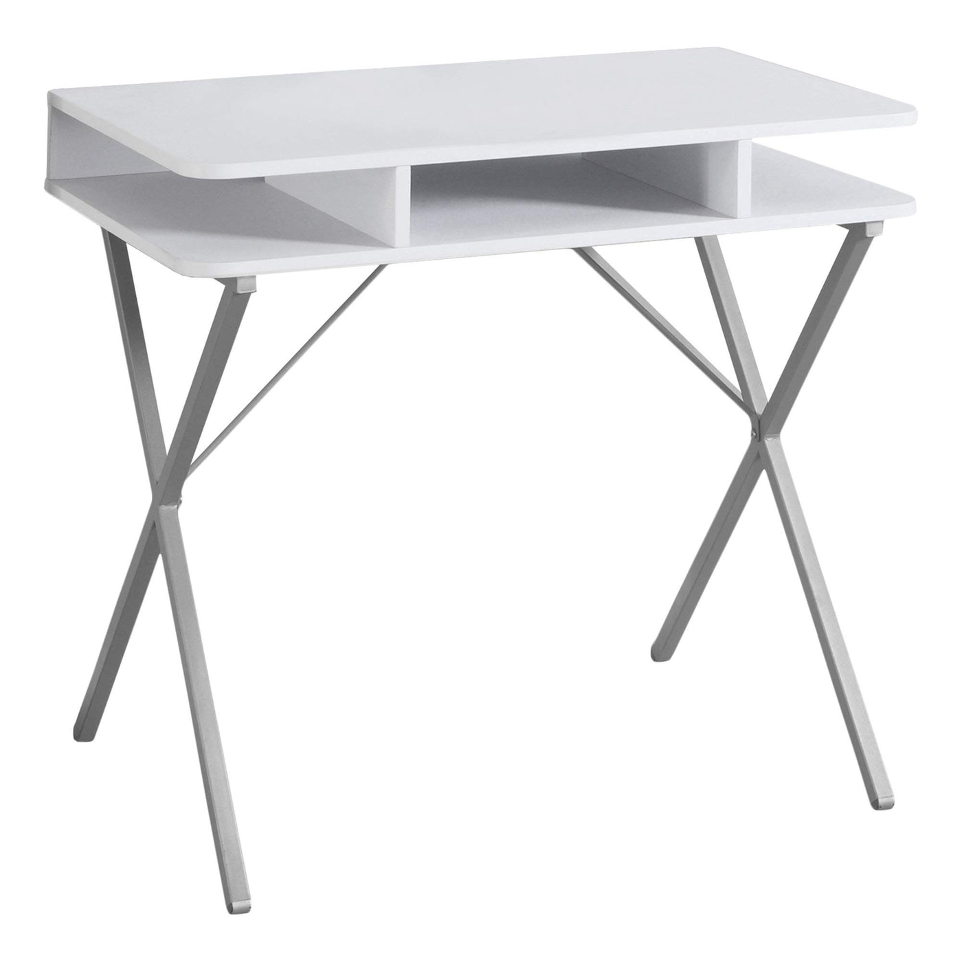 Monarch Specialties I 7100 Computer Desk, Home Office, Laptop, Storage Shelves, 31" L, Work, Metal, Laminate, White, Grey, Contemporary, Modern