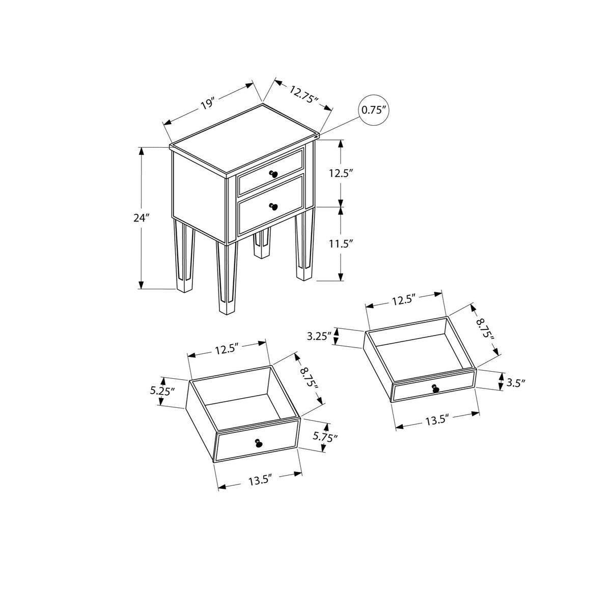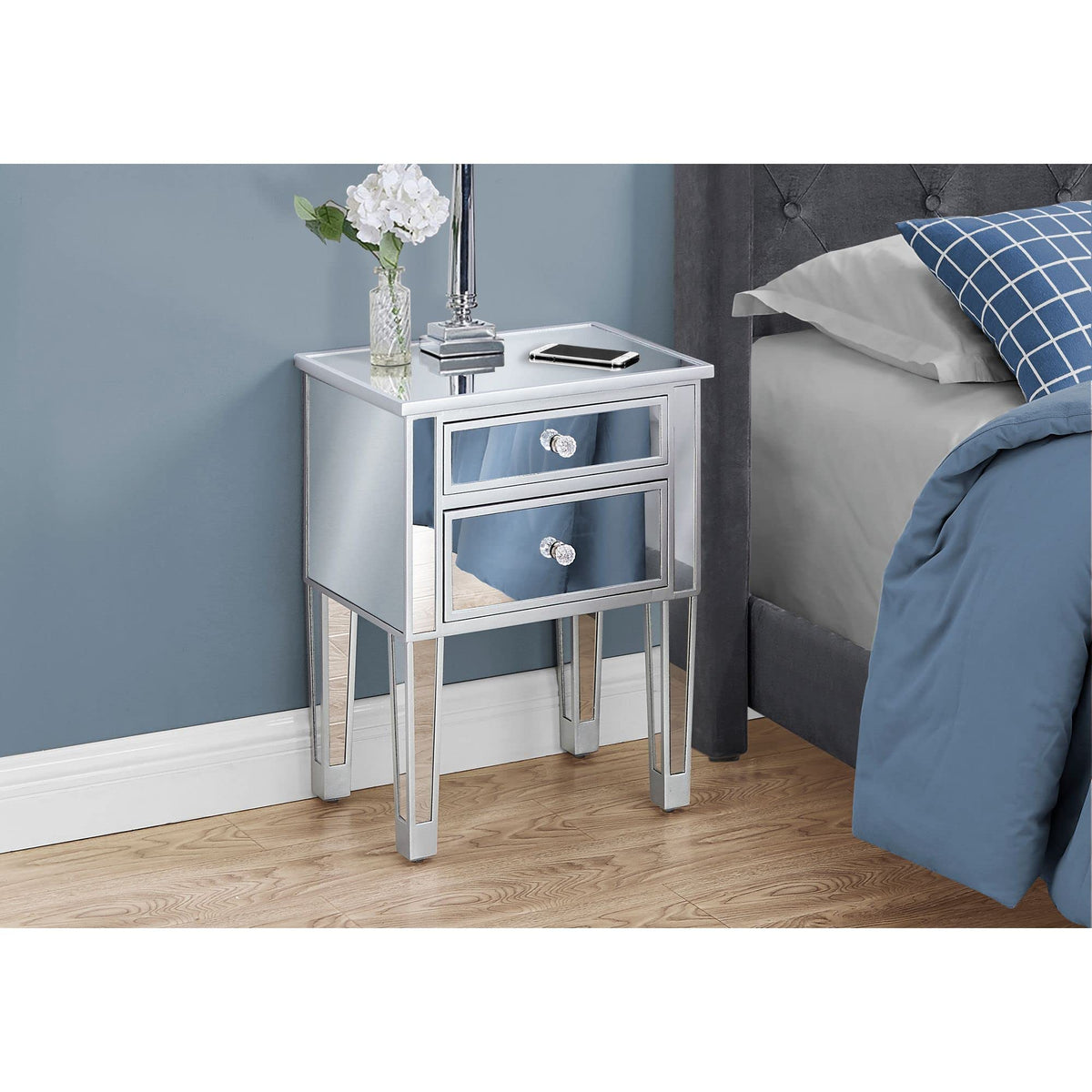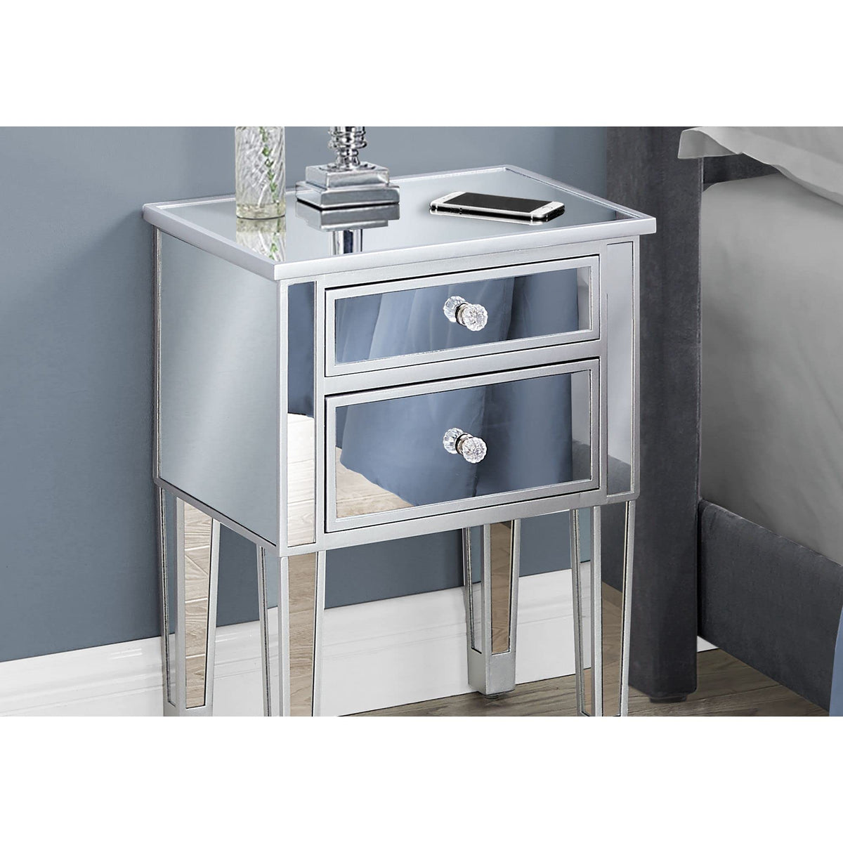 Monarch Specialties Side Nightstand-2 Storage Drawers-for Living Room or Bedroom-Glam-Style Accent Table, 25' H, Mirror/Silver