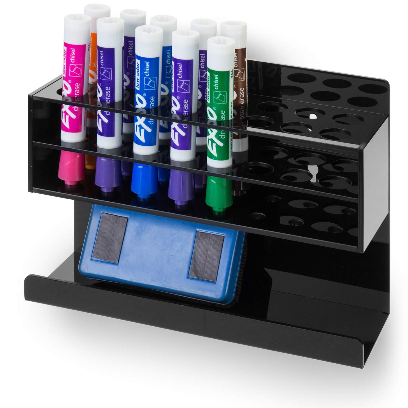 Keep You Dry Erase Supplies Easily Accessible For Big Office Meetings And Classroom Presentations With This Wall Mounted Dry Erase Whiteboard Marker And Eraser Organizer Rack. Providing Space For Up To 16 Dry Erase Markers And A Larger Slot To Store An Eraser, This Whiteboard Supply Holder Shelf Is Ideal For Keeping Mounted Near Your Whiteboard So That Your Dry Erase Pens Are Always Conveniently Within Reach. Combining Both Functionality And Attractive Contemporary Style, This Black Acrylic Dry Erase Marker Storage Rack Is An Excellent Addition To Any Home, Office Or School Setting. **Markers And Erasers Not Included**Approximate Dimensions: Overall - 6.75 H X 9.5 W X 3.0 D; Each Slot - 0.75 Diameter; Eraser Slot - 3.0 H X 9.5 W X 3.0 D (In Inches)
