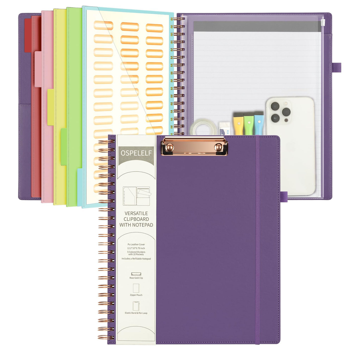 Ospelelf Leather Spiral Clipboard Folder With Storage Zipper Pouch, Foldable Clipboard Folio With Notepad For Letter Size, 5 Fol