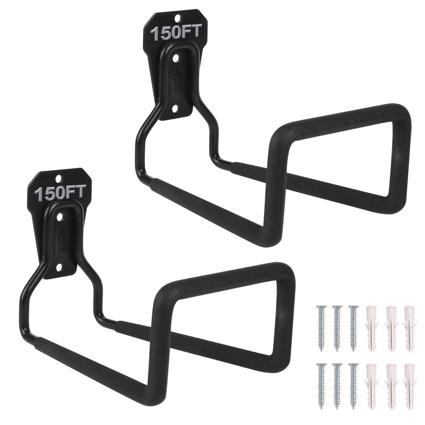 Feature: 1 Made Of High Quality Iron, Covering With Black Baking Finish Surface To Protect Your Item From Scratches And Slip Nice Looking Design, Withstand Extreme Conditions, Rust Proof And Durable For Many Years Elegant Enough For Beautiful Garden Area Or Working Spaces 2 To Install The Hooks, Just Place The Tip Of Plastic Anchors On The Spot You Marked And Fasten The Screw By Using Screwdriver 3 They Fit Neatly On Any Type Of Walls, Like Drywall And Wall Stud Size: 77L X 49 W X 33 H Loading Capacity: 70Lbs Up To 150 Feet Of 58 Inch Garden Hose Multipurpose Hose Holder Stand: Organize Your Water Hoses, Cables And Debris The Retro Style Hose Holder Live Up Your Garden Hose Holder Can Also Be Used As Plant Hooks Our Wall Hose Stand Is The Best Choice To Store And Organize Your Garage Or Garden, It Will Minimize Tripping Hazards And Risk Of Accidents Package Includes: 2 X Garden Hose Hanger 6 X Screws 6 X Anchor