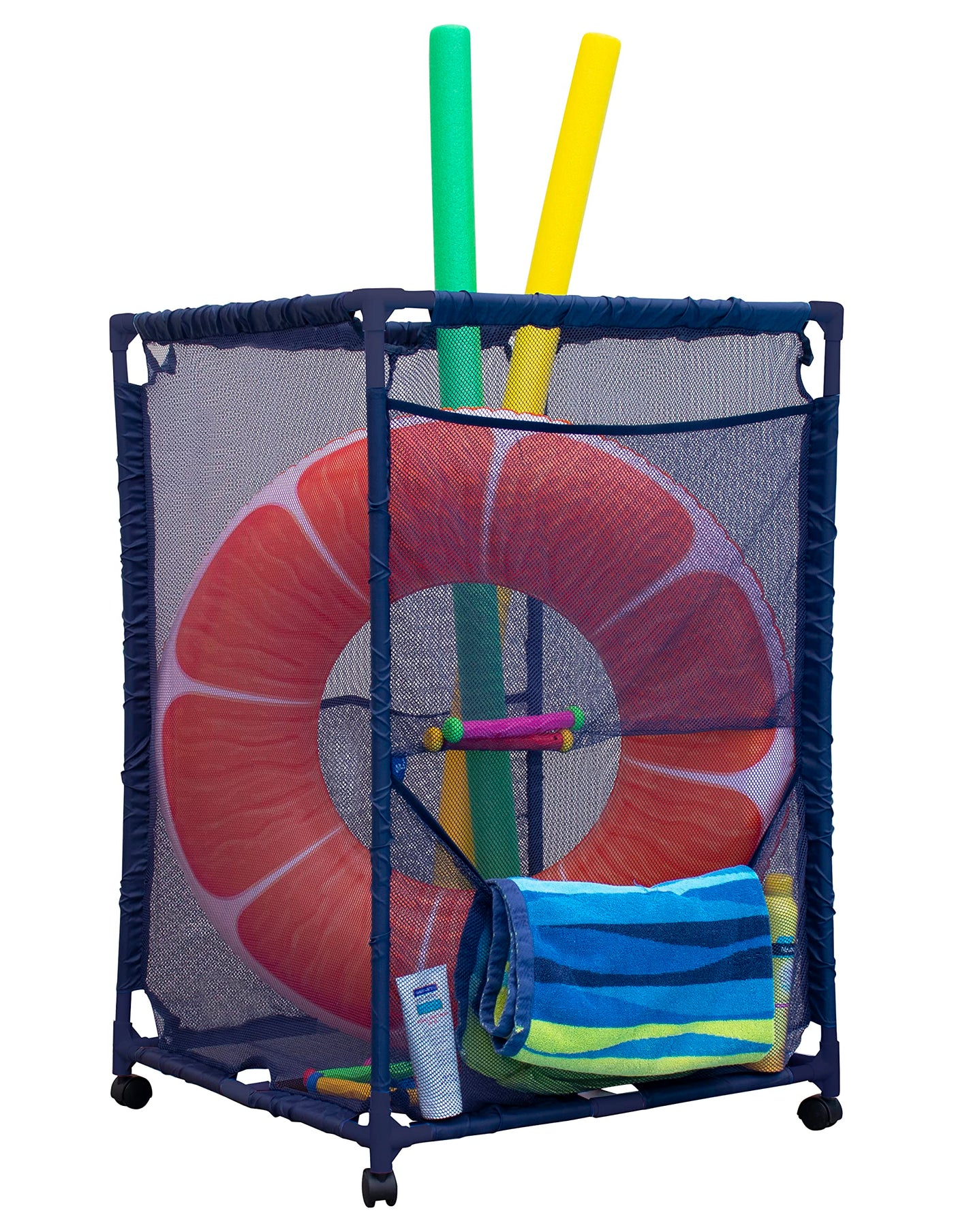 Pool Bins Rolling Pool Storage Organizer Bin, Medium (25.4' W X 25.4' L X 40' H), Blue