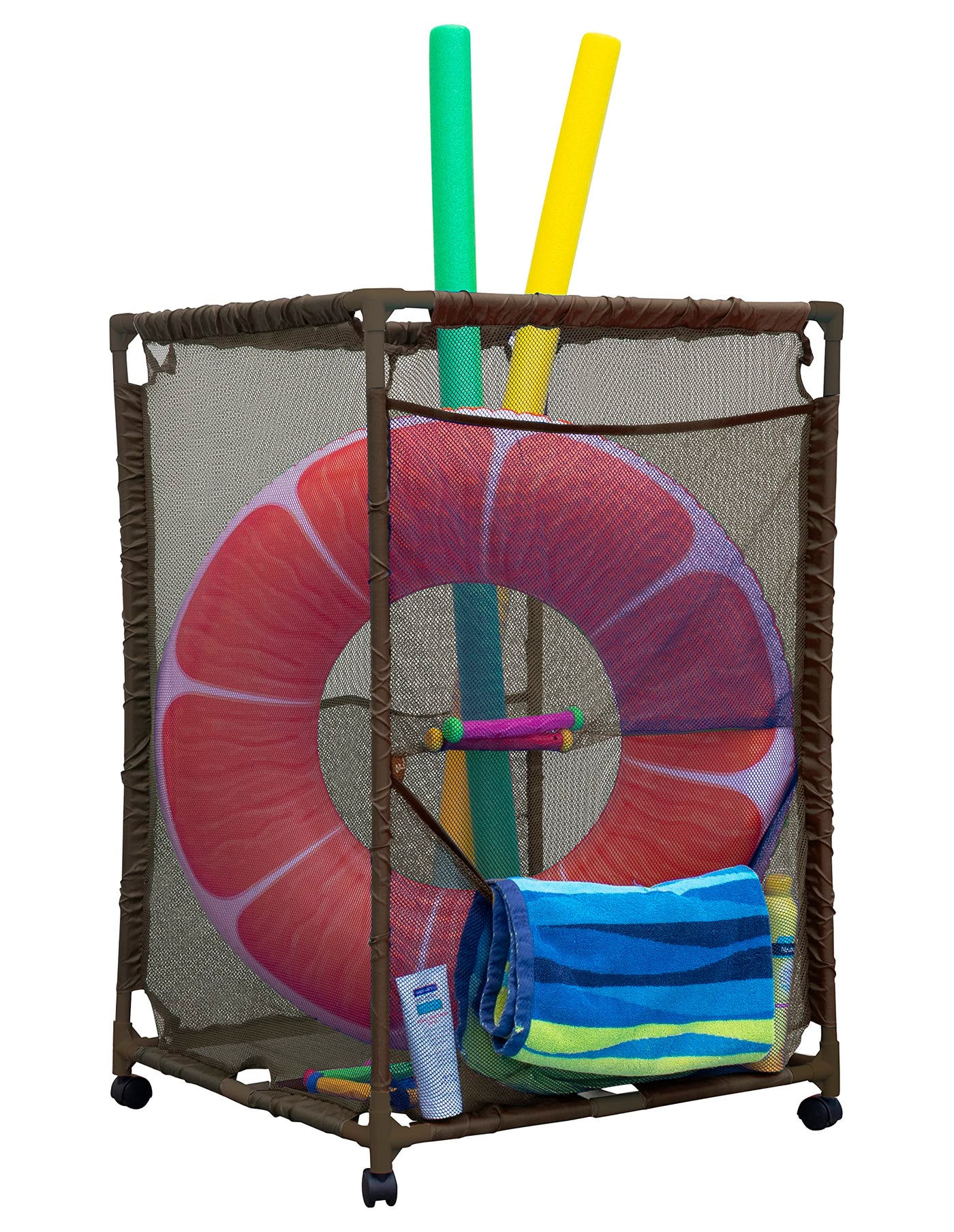 The Pool Bins Pool Accessories Organizer Is Great For Home Use, Swimming Pool Decks, Patio, And On The Beach. Use The Side Pockets To Store Smaller Toys And Use The Large Compartment To Store Your Large Floaties And Noodles. Made From Uv Resistant Mesh Fabric, Be Worry Free From The Color Fading From The Sun'S Rays. Furthermore, The Included Wheels Make It Easy To Transport The Organizer With Ease. Comes In A Vibrant Brown Color! 25.4'X 25.4'X 40'