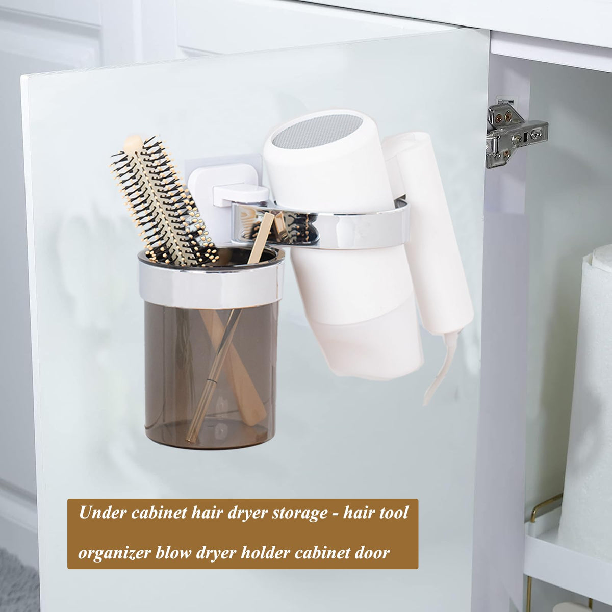 Q: Is the hair dryer holder compatible with all types of hair dryers?A: Yes, the hair dryer holder is designed to be compatible with most types and sizes of hair dryers, making it a versatile addition to your bathroom.