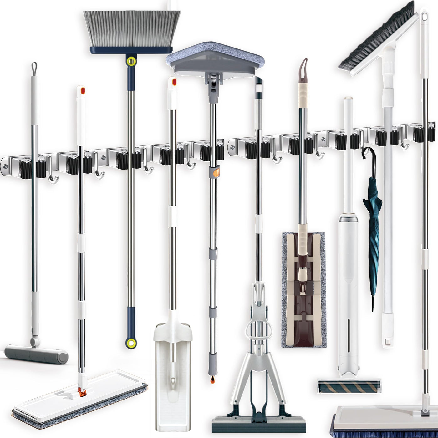 Romise - Perfect For Keeping Your Tools Neatly Stored, Organized, And Accessible On The Wall, Helps To Beautify Your Living Spaces And Create A Cozy Environment. Why Us ? 5 Slots And 4 Hooks - Can Accommodate Many Items Such As Mops, Brooms, Dustpans, Shovel, Small Gardening Tools, Etc. Easy To Use - Each Slot With Adjustable Design Can Hold 0.9-1.4In Large Diameter Handle To Easy To Put In And Take Out. Heavy Duty Hooks - The Powerful Capacity And Heavy-Duty Hooks Can Better Carry The Weight Of Items And Are Not Easy To Break. Strong And Sturdy - It Is Made Of 304 Stainless Steel, Compared With The Plastic Broom Rack, It'S More Stronger And Durable. Multi-Purpose - Keep Your Closet, Kitchen, Garage, Basement, Or Laundry Room In Organized. Also Ideal For Garden And Yard Tools Racks Storage And Organize. Easy To Install - Two Installation Methods. The Operation Is Simple And Can Be Completed In A Few Minutes. Specification: - Material: 304 Stainless Steel - Color: Balck - Size:17*1.1Inch - Hole Quantity: 5 Slots And 4 Hooks - Support Handle: Diameter Between 0.9-1.4 Inch Package Includes: - Mop And Broom Holder X 1Pcs - 3M Adhesive X 1Pcs - Screws X 1 Pack