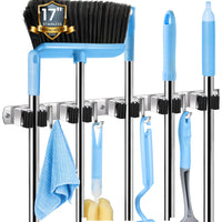 Romise - Perfect For Keeping Your Tools Neatly Stored, Organized, And Accessible On The Wall, Helps To Beautify Your Living Spaces And Create A Cozy Environment. Why Us ? 5 Slots And 4 Hooks - Can Accommodate Many Items Such As Mops, Brooms, Dustpans, Shovel, Small Gardening Tools, Etc. Easy To Use - Each Slot With Adjustable Design Can Hold 0.9-1.4In Large Diameter Handle To Easy To Put In And Take Out. Heavy Duty Hooks - The Powerful Capacity And Heavy-Duty Hooks Can Better Carry The Weight Of Items And Are Not Easy To Break. Strong And Sturdy - It Is Made Of 304 Stainless Steel, Compared With The Plastic Broom Rack, It'S More Stronger And Durable. Multi-Purpose - Keep Your Closet, Kitchen, Garage, Basement, Or Laundry Room In Organized. Also Ideal For Garden And Yard Tools Racks Storage And Organize. Easy To Install - Two Installation Methods. The Operation Is Simple And Can Be Completed In A Few Minutes. Specification: - Material: 304 Stainless Steel - Color: Balck - Size:17*1.1Inch - Hole Quantity: 5 Slots And 4 Hooks - Support Handle: Diameter Between 0.9-1.4 Inch Package Includes: - Mop And Broom Holder X 1Pcs - 3M Adhesive X 1Pcs - Screws X 1 Pack