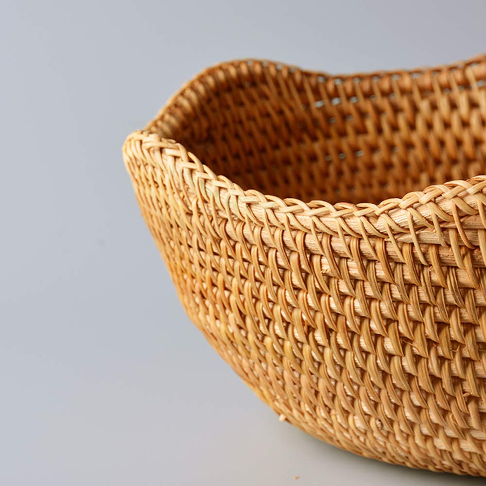 Q: How should I clean and maintain these handwoven basket bowls?A: To clean the bowls, simply wipe them with a damp cloth. Avoid submerging them in water and protect them from long-term exposure to excessive moisture or sunlight to prevent mold and damage.