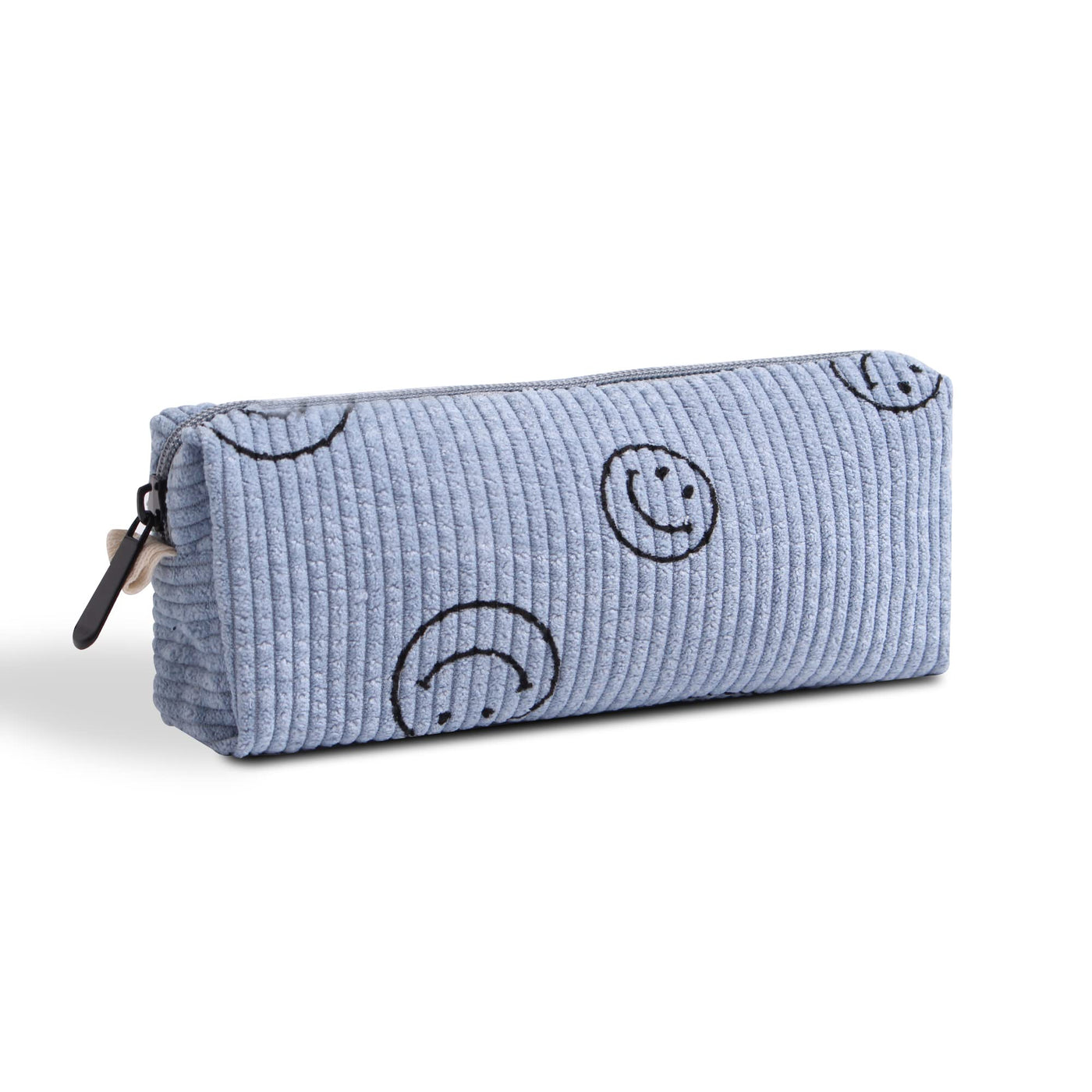 Smile Pencil Pen Case Office Large Storage High Capacity Bag Pouch Holder Box Organizer Makeup Pouch Bag Cosmetic Bag (Blue)