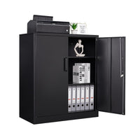 Stani Metal Storage Cabinet With 2 Adjustable Shelves, Steel Counter Cabinet With Lockable Doors For Home Office (Black)