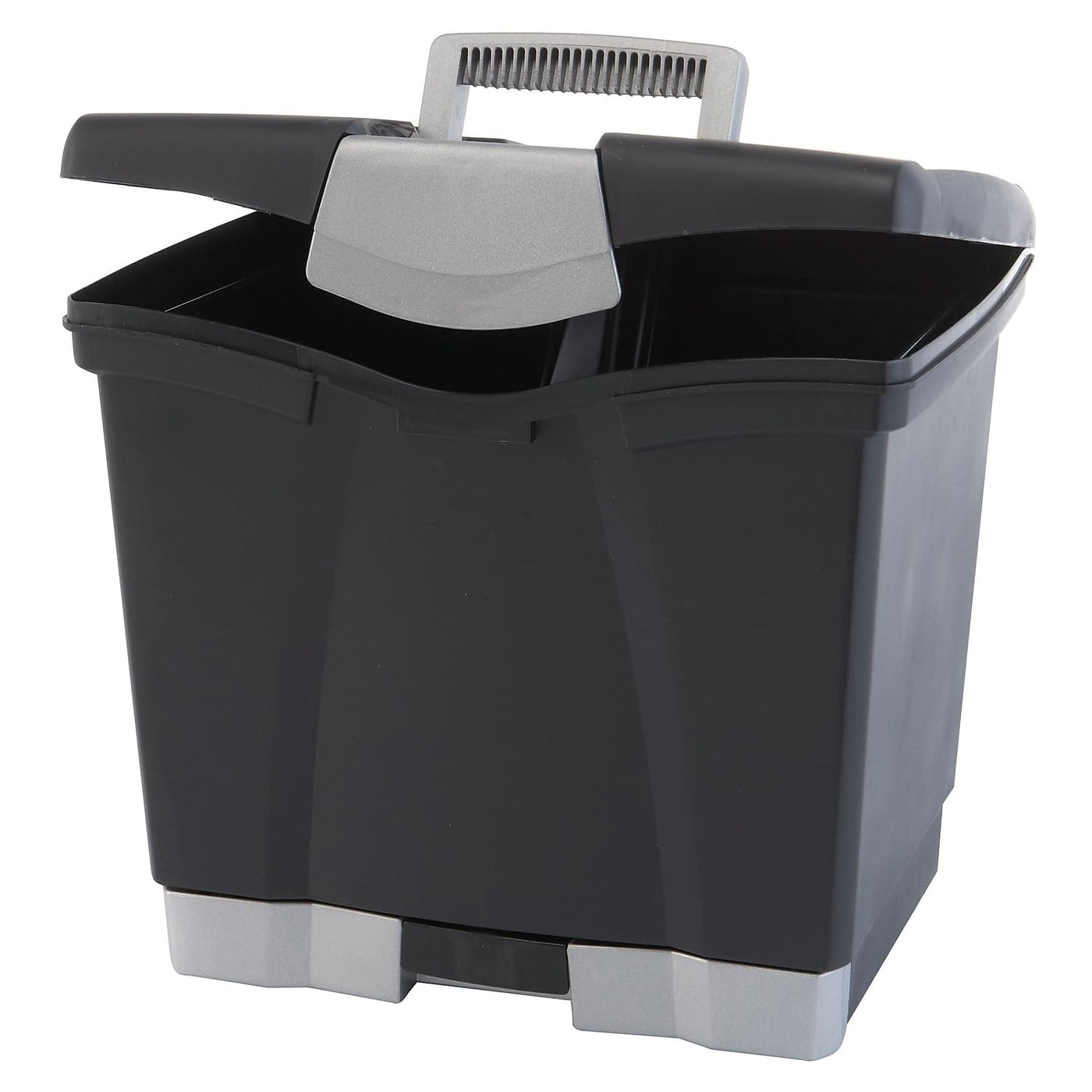 Storex 61523U01C Portable File Storage Box W/Drawer Letter Latch Black