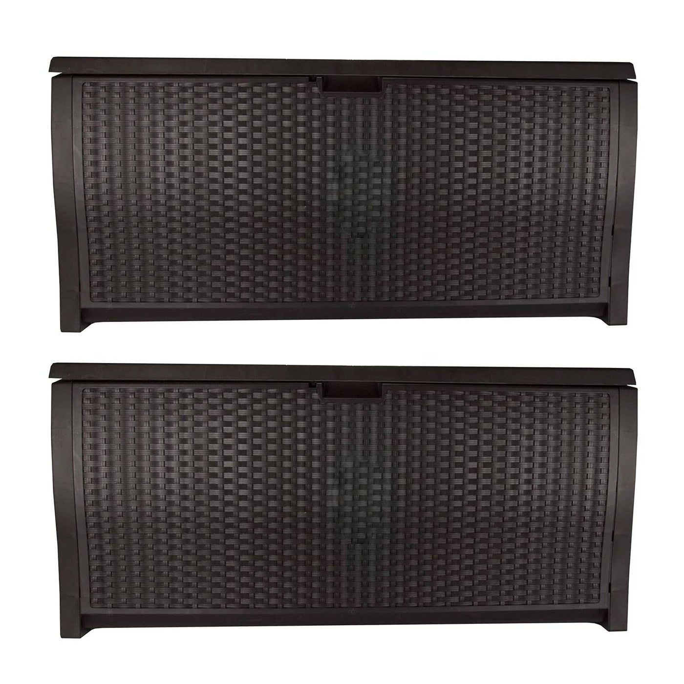 Suncast 99 Gallon Plastic Wicker Deck Box Container Storage For Garden, Garage, Home, Pool, Indoor And Outdoor Use, Mocha (2 Pac