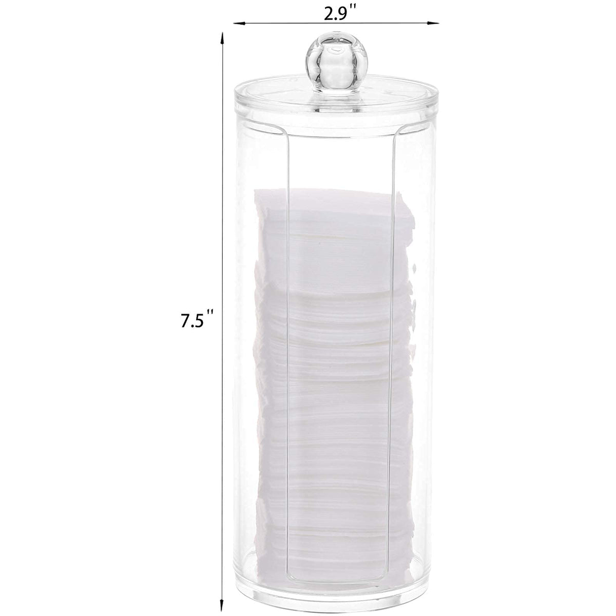 Q: What are the dimensions of the cotton pad holder?A: The cotton pad holder measures 2.9 inches in length and width, with a height of 7.5 inches, making it compact and suitable for various storage needs.