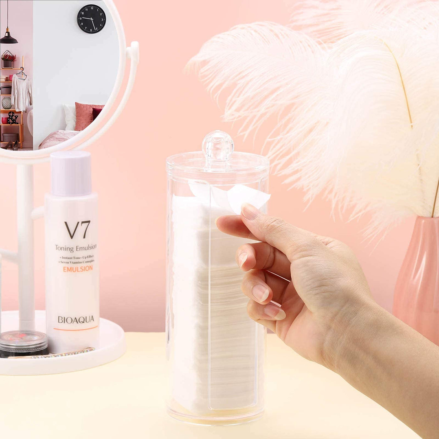 Tecbeauty Cotton Pad Holder Makeup Pads Cotton Swab Dispenser For Bathroom Storage,Clear, Acrylic, 2.9X7.5 Inch