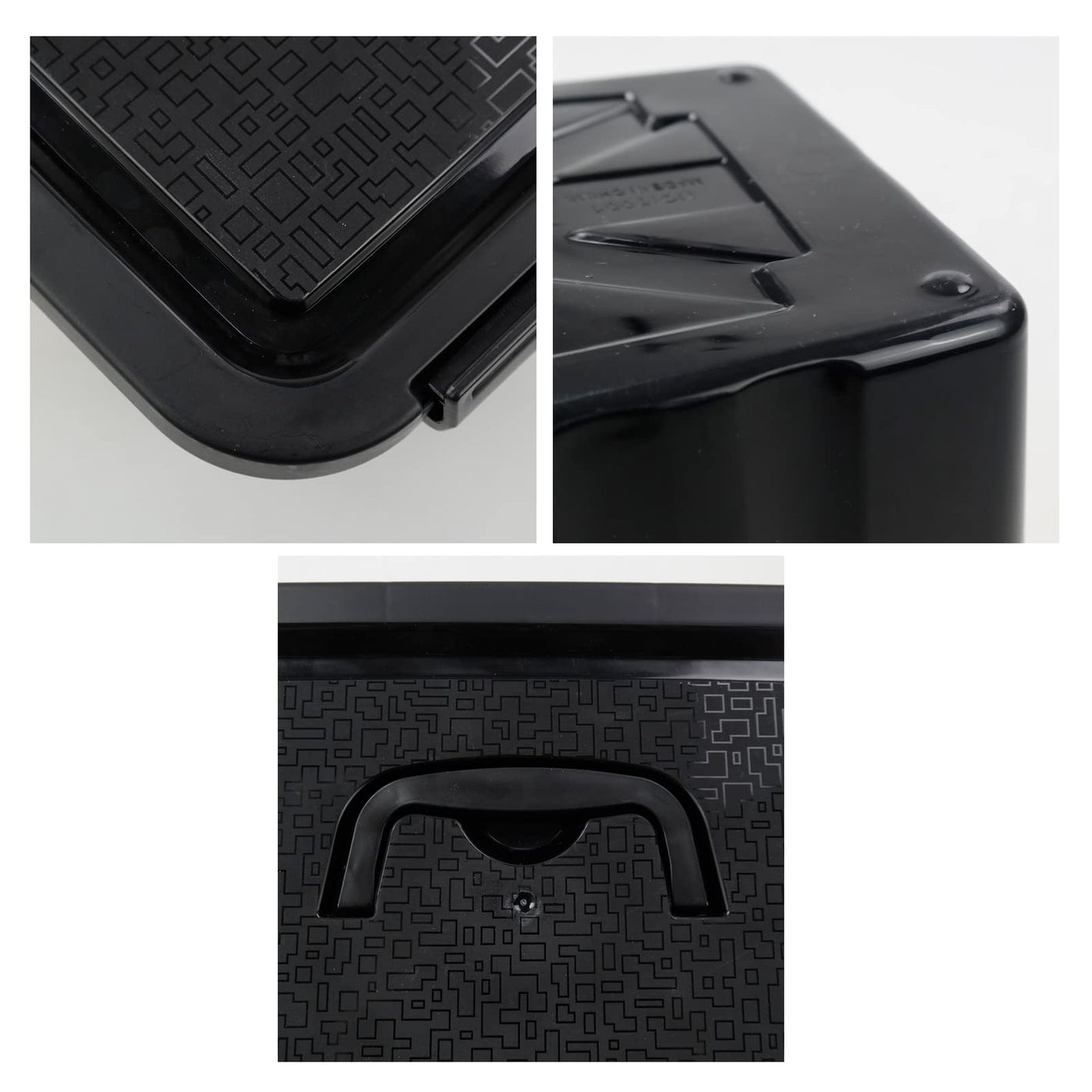 Q: What are the dimensions of the Tyminin Black Plastic Storage Bin?A: The Tyminin Black Plastic Storage Bin measures 10.63 inches in length, 7.68 inches in width, and 6.3 inches in height, making it an ideal size for organizing various items.