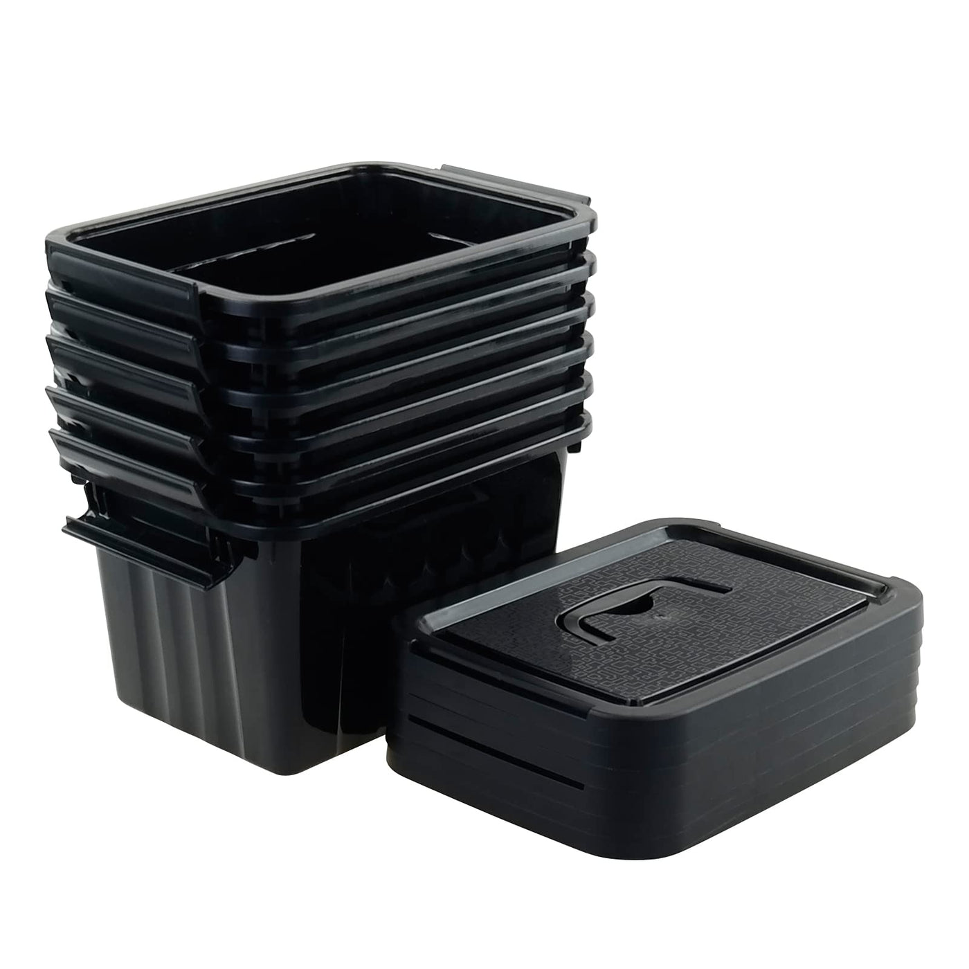 Tyminin Black Plastic Storage Bin Ith Lids And Latch, Small Stackable Organizing Box Containers, 6 Packs