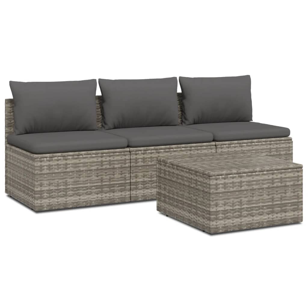 vidaXL Gray Patio Lounge Set with Cushions - Stylish Poly Rattan Garden Furniture - Comfy Outdoor Lounge with Storage Space - Durable Weather-Resistant Construction