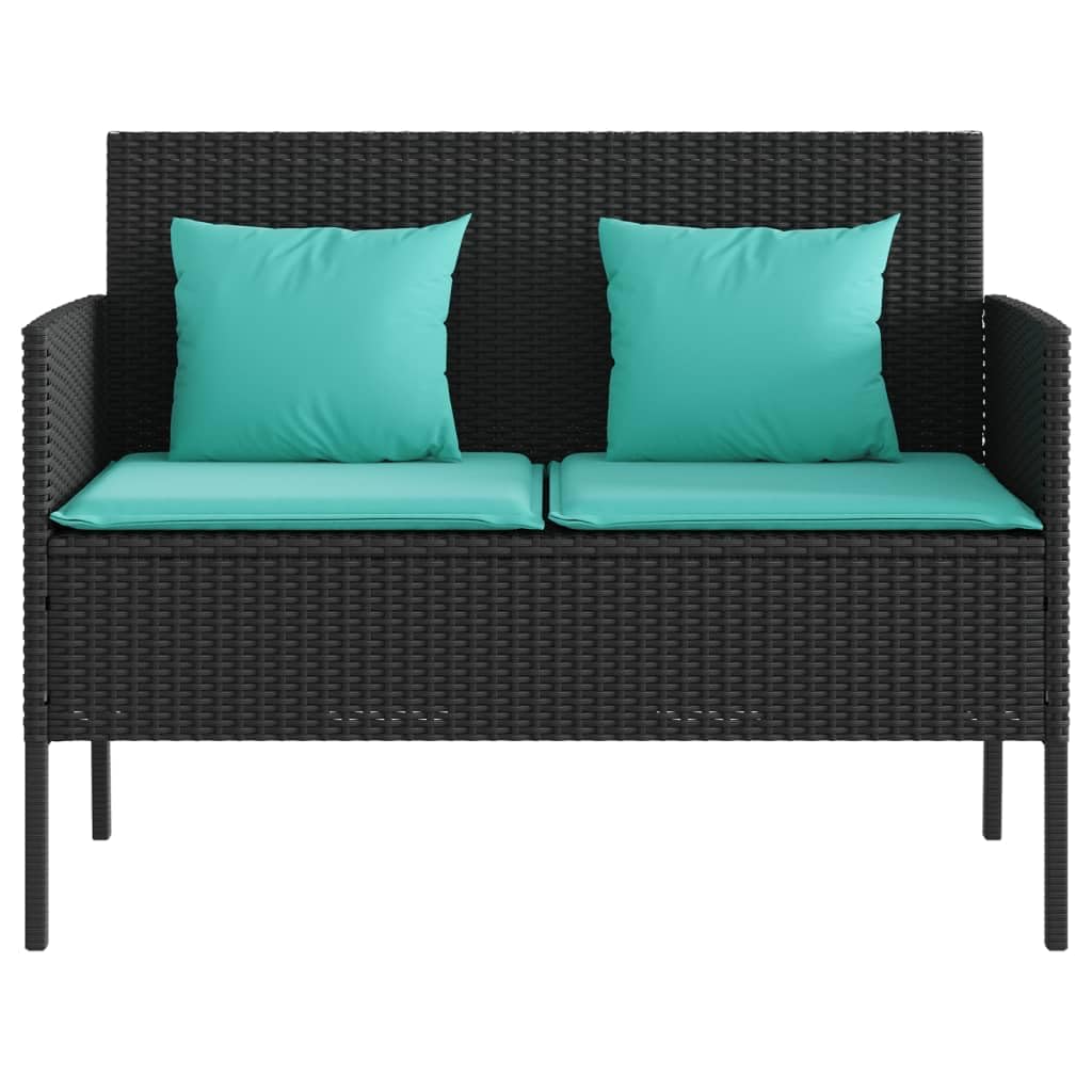 vidaXL Outdoor Loveseat Bench - Black PE Rattan, Padded Blue Cushions, Storage Under-Seat, Weather-Resistant, Garden/Patio Furniture, 44.5x24x34.3