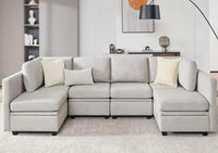 Flexible Modular Design: Customize Your Living Space With This Convertible Modular Sectional Sofa. Arrange It To Suit Any Room Layout, Creating A Cozy Sofa Bed, L-Shaped Or U-Shaped Sofa To Match Your Decor. The Chic Design And Colors Add Style To Any Interior | Unrivalled Comfortable Seating: This Modular Couch Features Thick Seat Cushions With High-Quality Foam And Premium Springs, Providing A Perfect Balance Of Support And Softness. The Raised Back Pillows Enhance Comfort, While The Skin-Friendly Luxury Polyester Fabric And Removable Covers Make Cleaning Easy | Clever Storage Solutions: Each Seat In This Sectional Couch Offers Hidden Storage, Perfect For Organizing Toys, Blankets, And Pillows. Adjustable Armrests And Backrests With Three Tilt Positions Adapt To Different Seating Preferences And Body Heights | Unmatched Durability & Premium Quality: Constructed With A Sturdy Hardwood Frame And Reinforced U-Shaped Connectors, This Sectional Sofa Offers Lasting Structural Integrity. The Robust Sofa Legs Add Additional Support, Ensuring Durability Over Time | Effotrless Assembly: With Clear Step-By-Step Instructions, One Person Can Assemble The Entire Sofa In Just 30 Minutes. No Complicated Procedures Or Special Tools Are Required—Enjoy Your New Sofa Without Any Hassle