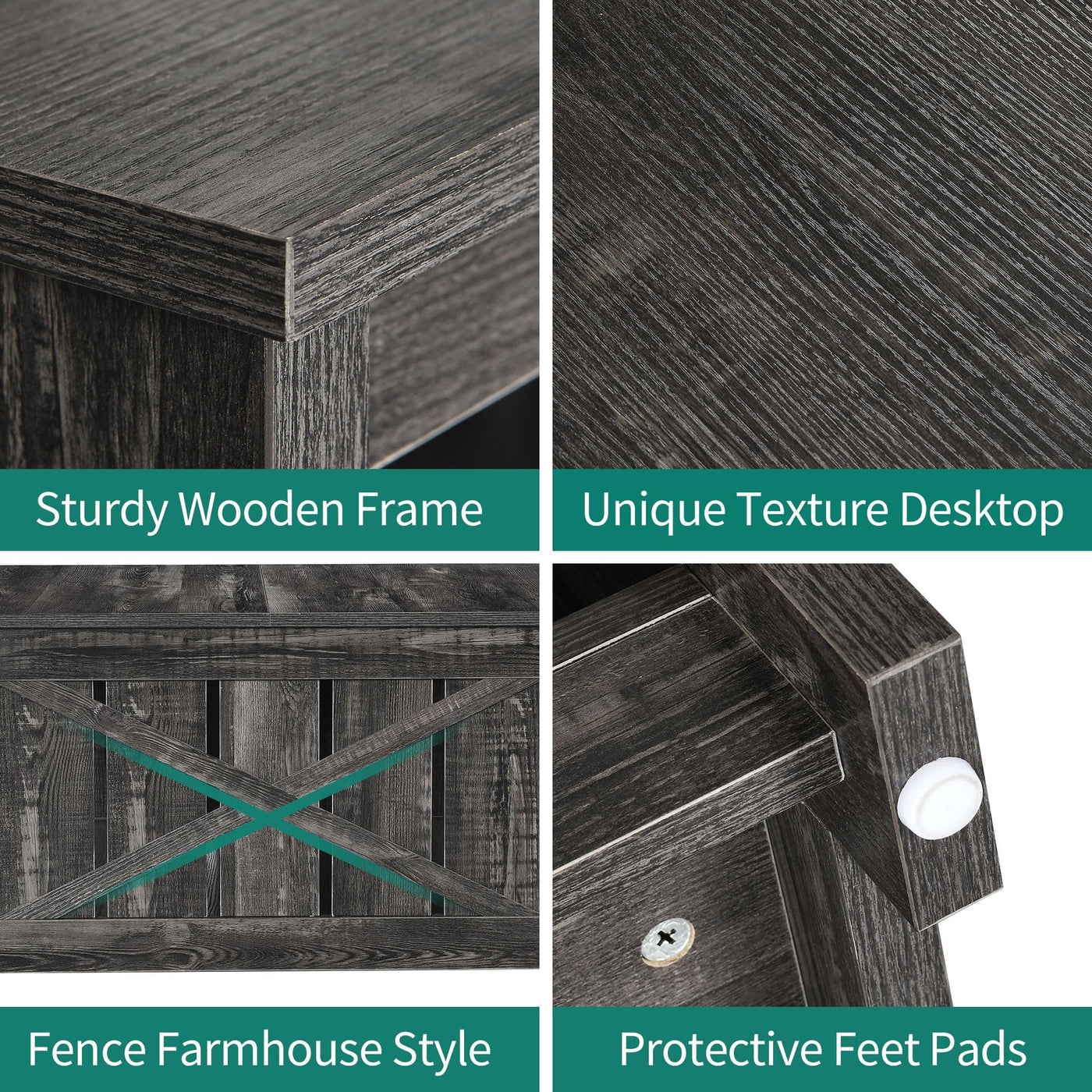 Modern & farmhouse style - Square coffee table combines the natural dark grey; the minimalist design also adds unique rustic aesthetic to your room; farmhouse coffee table can complement any modern or rustic rooms, highlighting your personal taste and ideals | Sturdy and practical construction - The grey coffee table is made of particle boards and can hold up to 180 lbs, featuring strong weight capacity; the 'X' design frame on both sides increases the sturdiness and brings more farm flair; the adjustable feet protect your floor from scratches, allowing you to decorate anywhere in the room | Double layer design - The spacious 2-tier living room coffee table not only greatly increases your storage space but also acts as daily workstation, study table, dining table, etc to meet your multiple purposes; the unique semi-open design allows you to easily take knickknacks, decorations, crafts, magazines, etc from both sides | Scratch-proof and easy to clean - The storage coffee table has a waterproof and scratch-proof wood top, more durable than regular rectangular coffee tables. The easy-to-clean tabletop only needs you to wipe with a dry cloth, reducing your tedious household chores | Easy to assemble - You can quickly and easily assemble the YITAHOME coffee table as it boasts of its simple structure and comes with a detailed illustrated user manual and necessary accessories; if you have any questions, we’ll give you a quick reasonable reply sincerely
