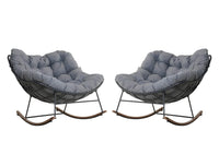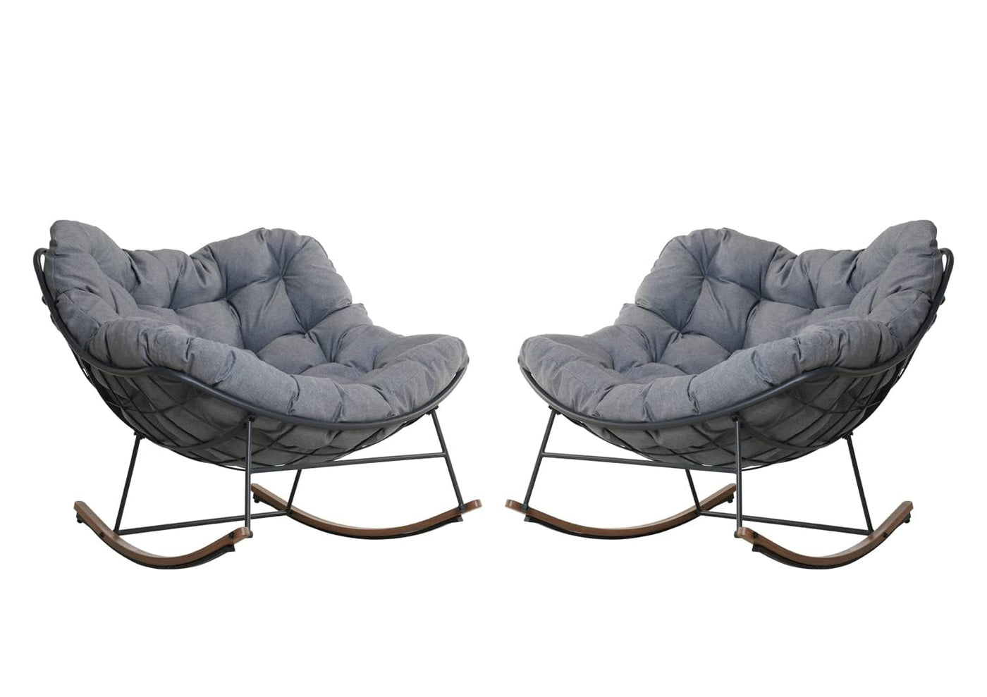 Grand Patio 2-Piece Royal Rocking Chairs, E-Coated Outdoor Rocking Recliner Chair Set Of 2 With Cushion For Front Porch Garden Patio Backyard, Grey