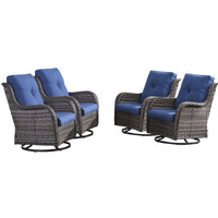 Hummuh Outdoor Swivel Rocker Wicker Patio Chairs High Back Pe Rattan Glider Chairs 4Pcs Patio Furniture Set(Grey,Blue)