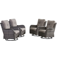 Hummuh Outdoor Swivel Rocker Wicker Patio Chairs High Back Pe Rattan Glider Chairs 4Pcs Patio Furniture Set(Grey,Grey)