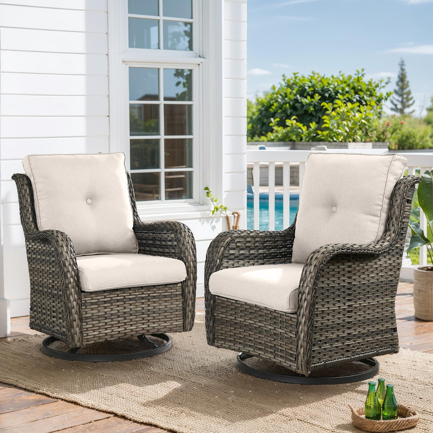 Hummuh Outdoor Swivel Rocker Wicker Patio Chairs Set Of 2, Rattan Rocking Chair Furniture Set (Grey,Beige)