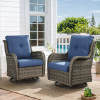 Hummuh Outdoor Swivel Rocker Wicker Patio Chairs Set Of 2, Rattan Rocking Chair Furniture Set (Grey,Blue)