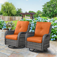 Hummuh Outdoor Swivel Rocker Wicker Patio Chairs Set Of 2, Rattan Rocking Chair Furniture Set(Grey,Orange)