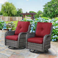 Hummuh Outdoor Swivel Rocker Wicker Patio Chairs Set Of 2, Rattan Rocking Chair Furniture Set(Grey,Red)